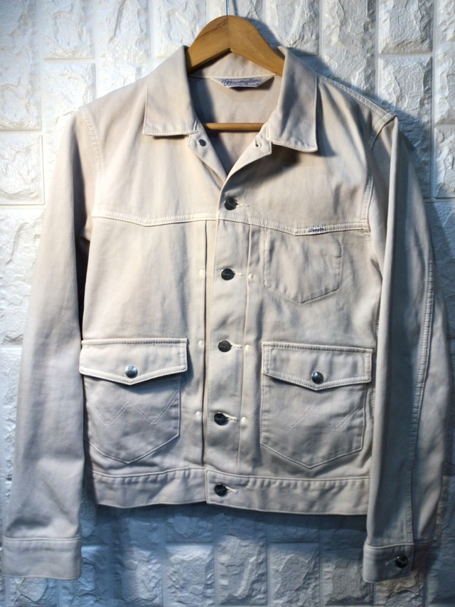 ラングラー タケオキクチ デニムジャケット USED COLOR オフホワイト サイズ表記:M 着丈:約58cm 身幅:約48cm 肩幅:約42cm 袖丈:約61.5cm ※採寸方法によっては、多少の誤差が出る場合がございます。 あらかじめご了承ください。 襟周りに黄ばみ汚れ、ボタン表面に所々小傷があります。 尚、店頭にて同時販売している商品ですのでご理解の上ご検討ください。 【ご購入される場合の注意点】 ・基本的にほぼ全ての商品が中古品での取り扱いになります。 ・実店舗と同時販売の物もあるため、商品状態の変化や実店舗で売れた際の欠品となる場合がございます。 ・画像にあるものが全てです。付属品のお付けなどは行っておりません。ハンガーも対象外です。 ・撮影方法、モニターの特性により、色や素材感が実物と違って見える場合や、画像に写らない細かなキズや汚れがある可能性がございます。 【返品について】 ・商品到着後3日以内にご連絡をいただいた場合に限り返品対応させていただきます。 ・商品ページに記載のない致命的な商品不良等があった場合などの理由以外での返品は基本的に行っておりません。 ・イメージ違い、サイズが合わない等お客様都合での返品対応はできません。 ・お客様の責任で破損、汚損が生じた場合、お客様自身で修理、加工された場合の返品対応はできません。 ・お客様のご都合により、過度な返品が続く場合返品対応をお断りさせていただきます。