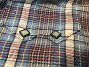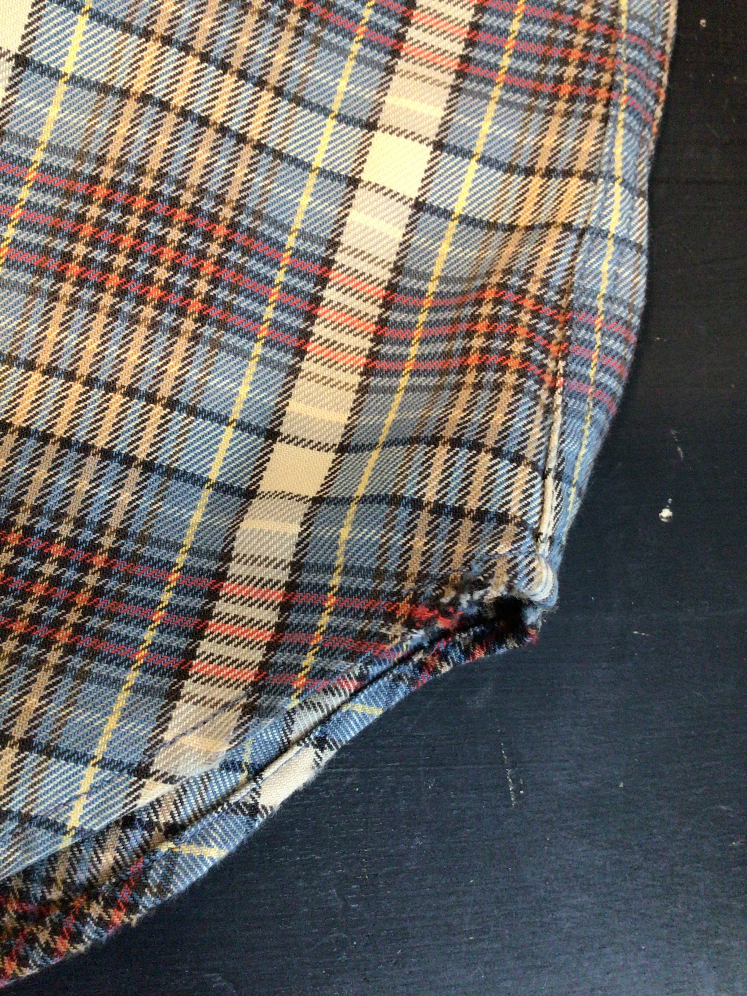 胸ポケットや袖口、裾などに使用感のある生地のスレや破れなどあります。