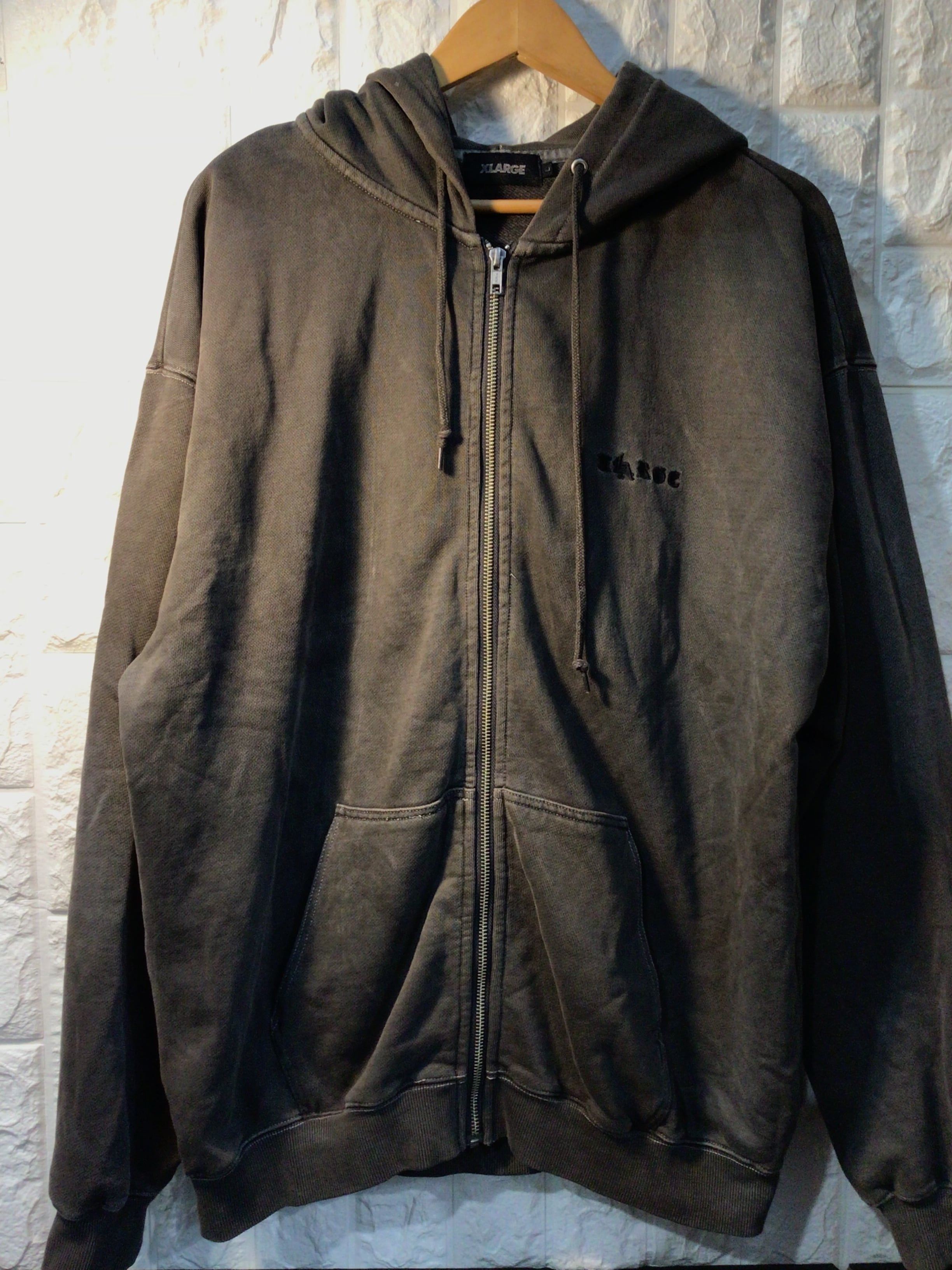 エクストララージ ピグメントダイ パーカー フーディー エンボス ロゴ ジップアップ