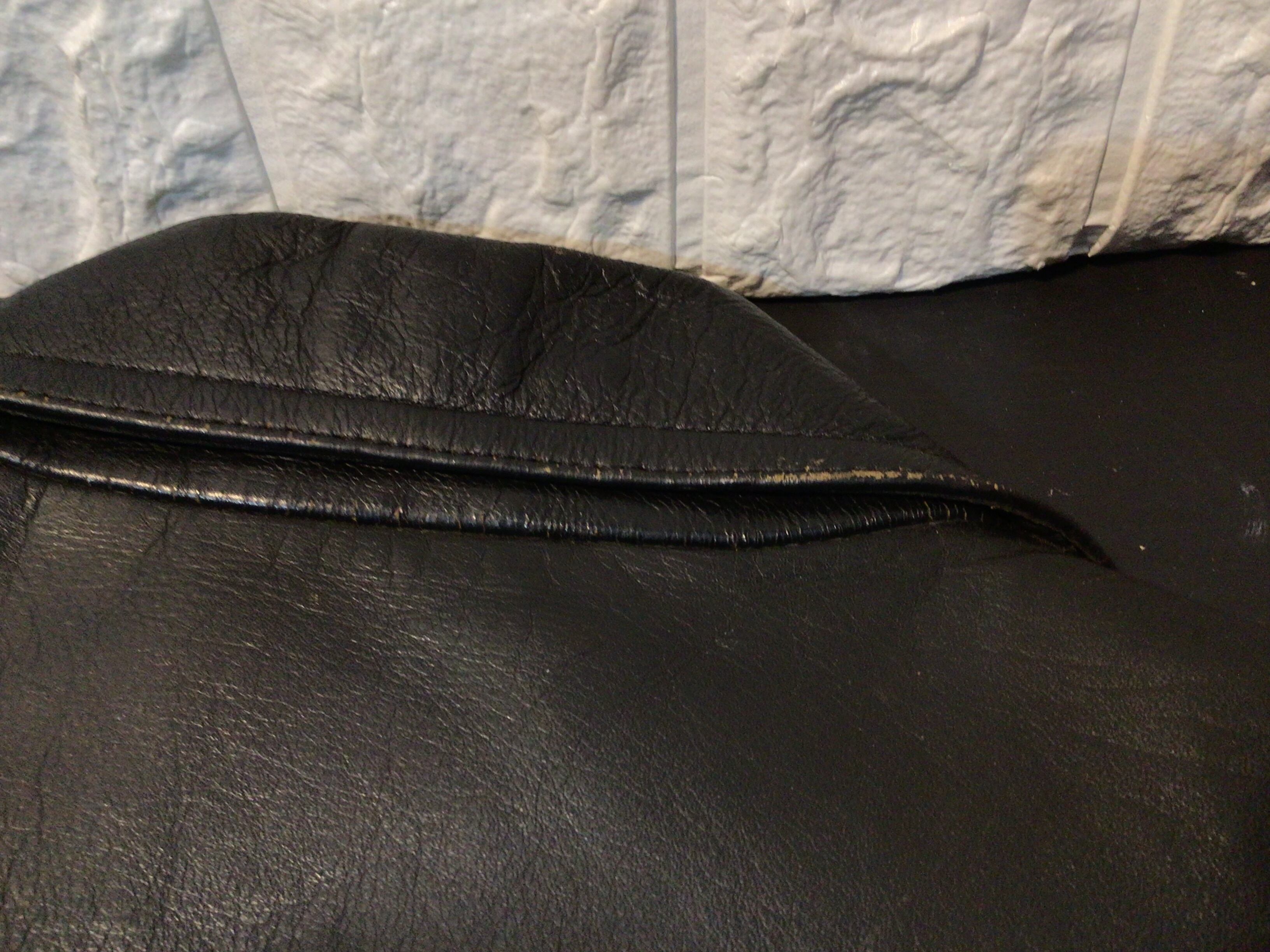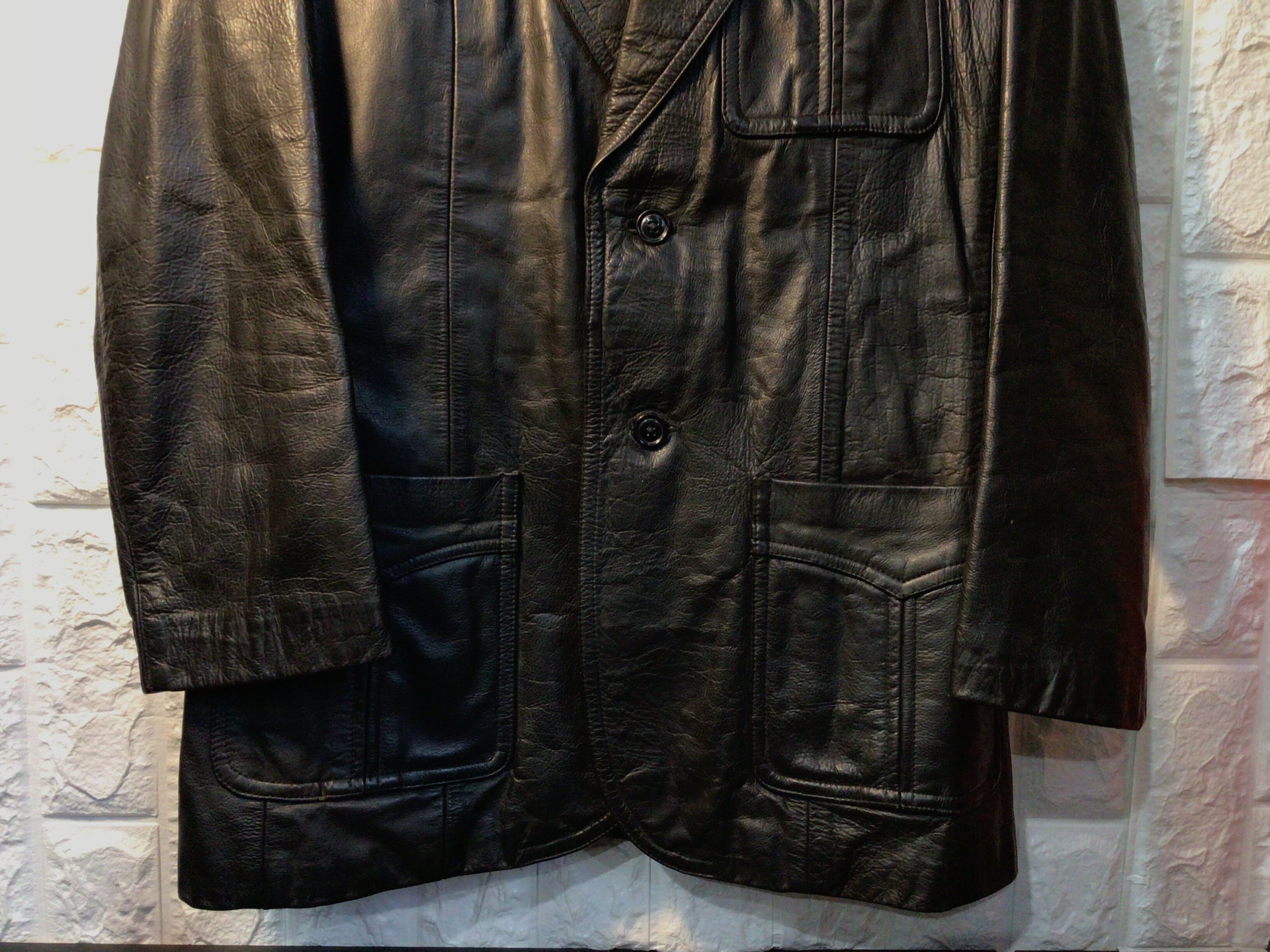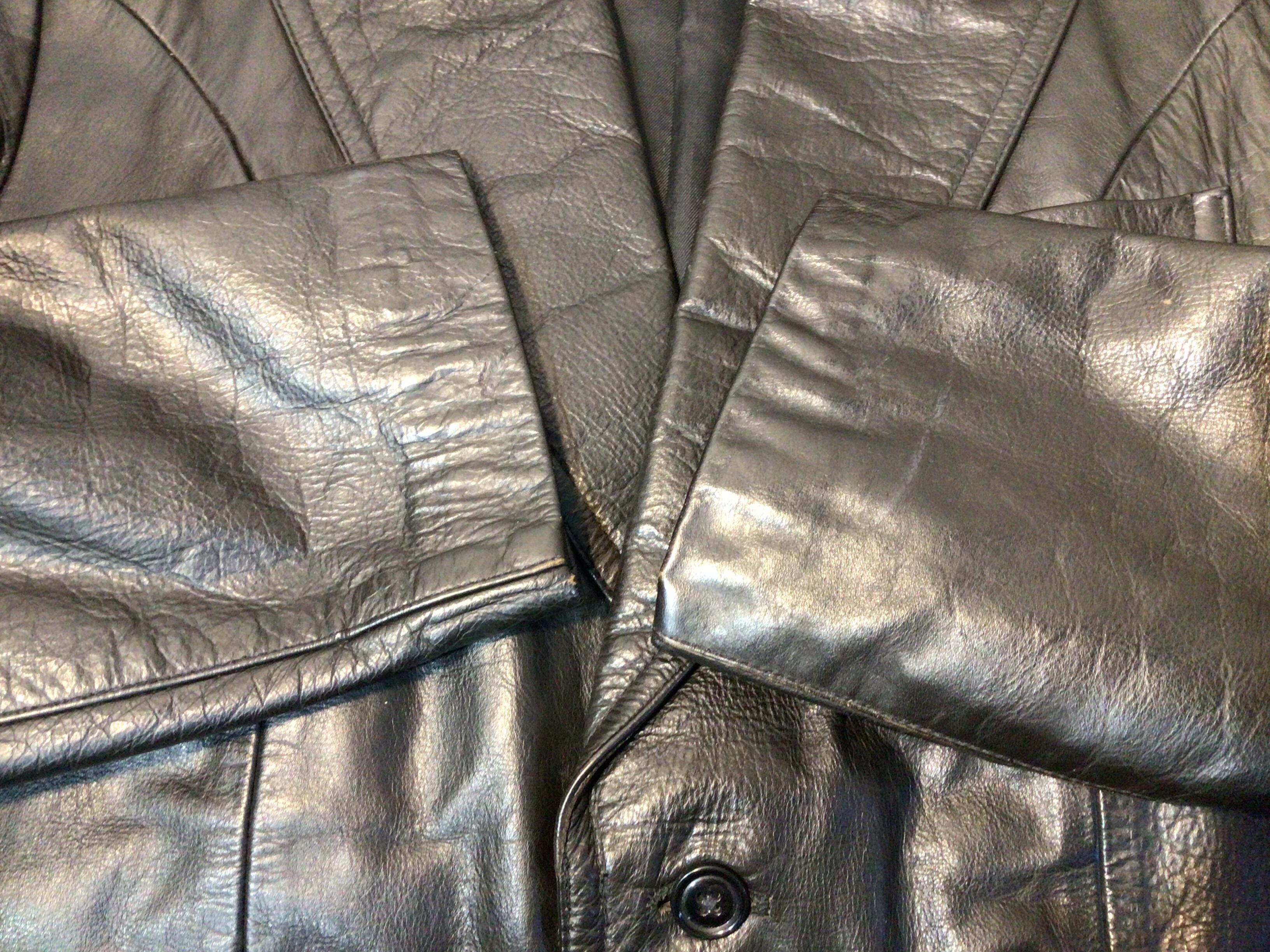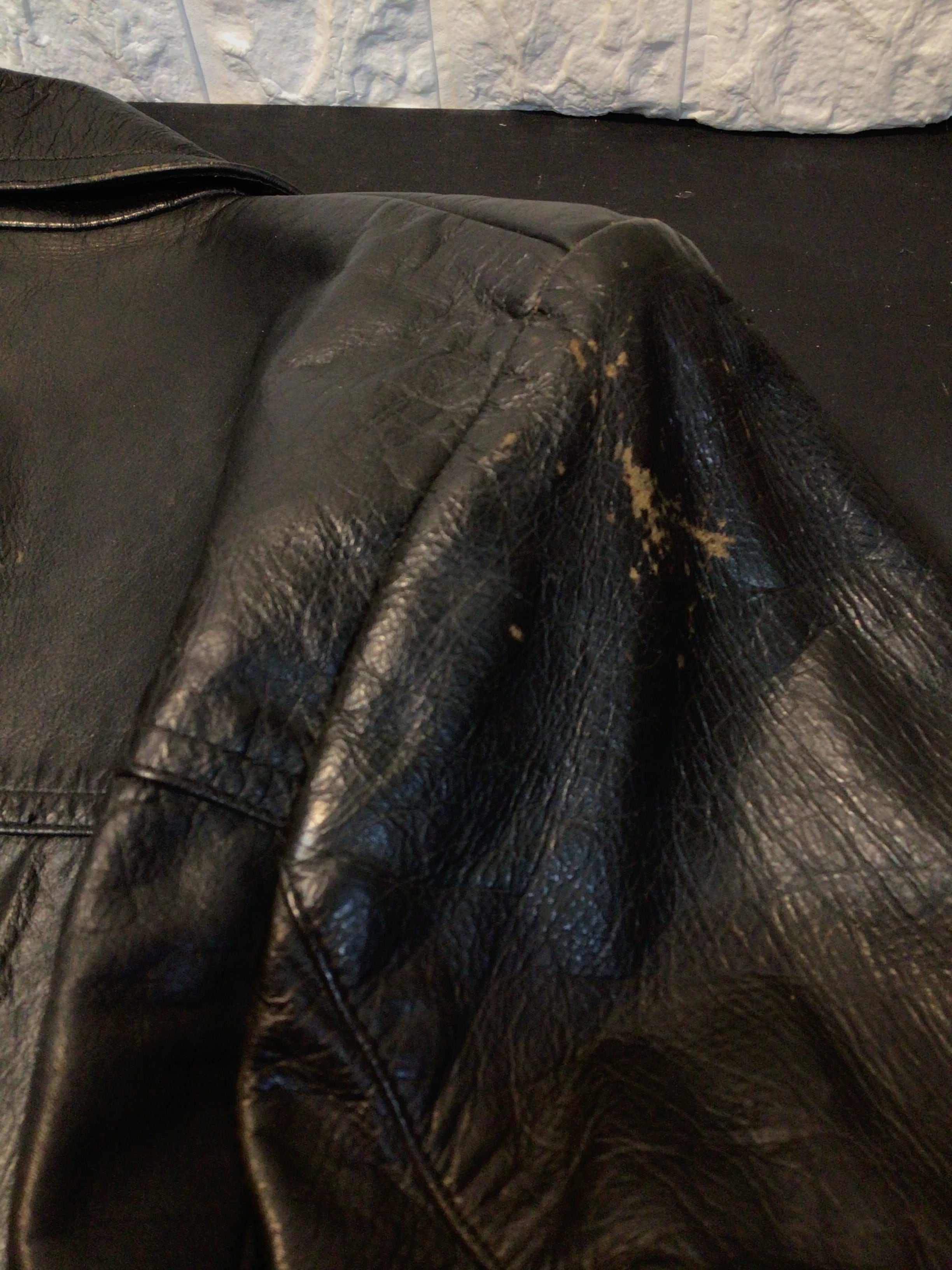 両方部分と襟部分に経年劣化により生地のひび割れや剥がれがあります。