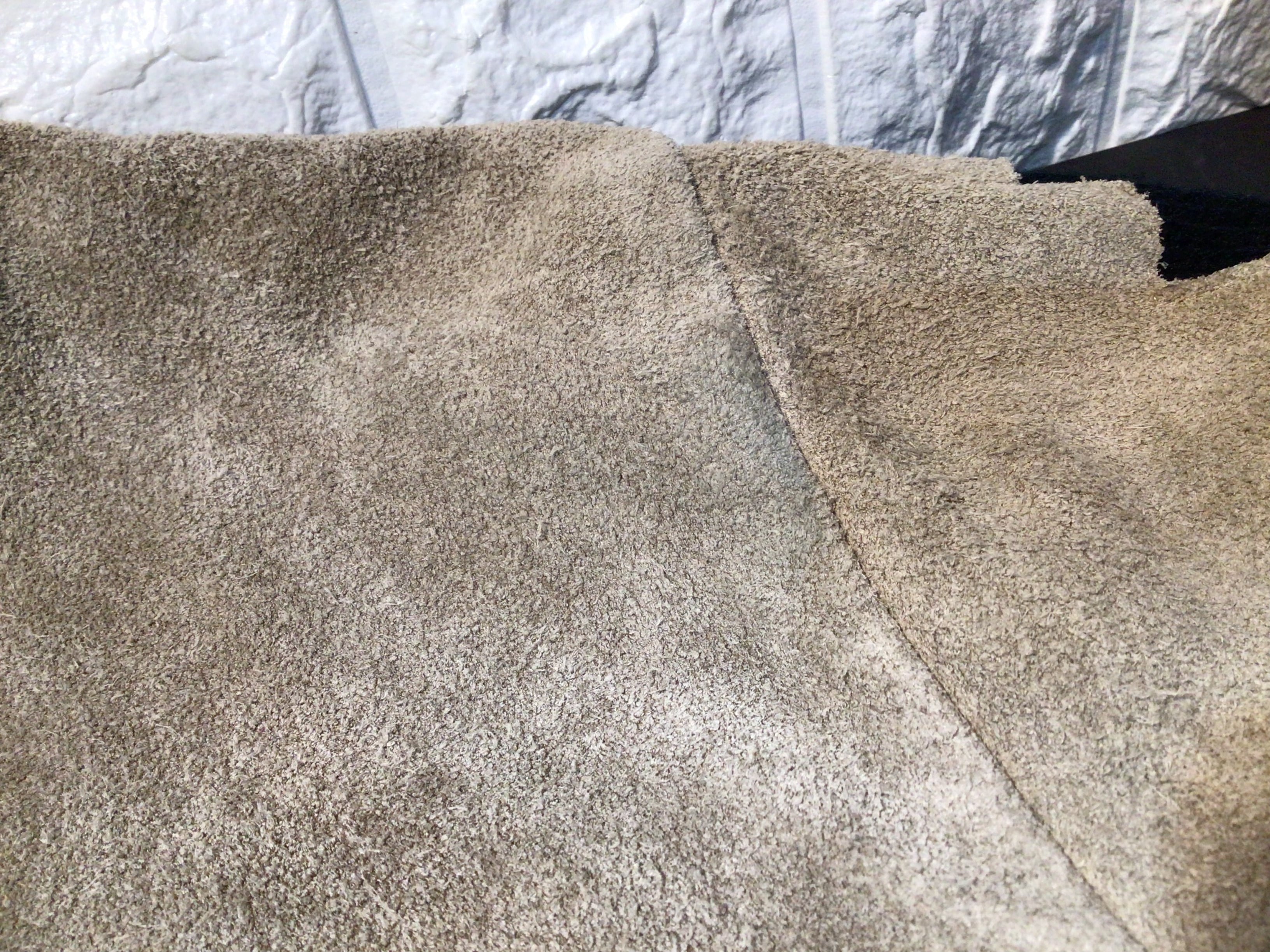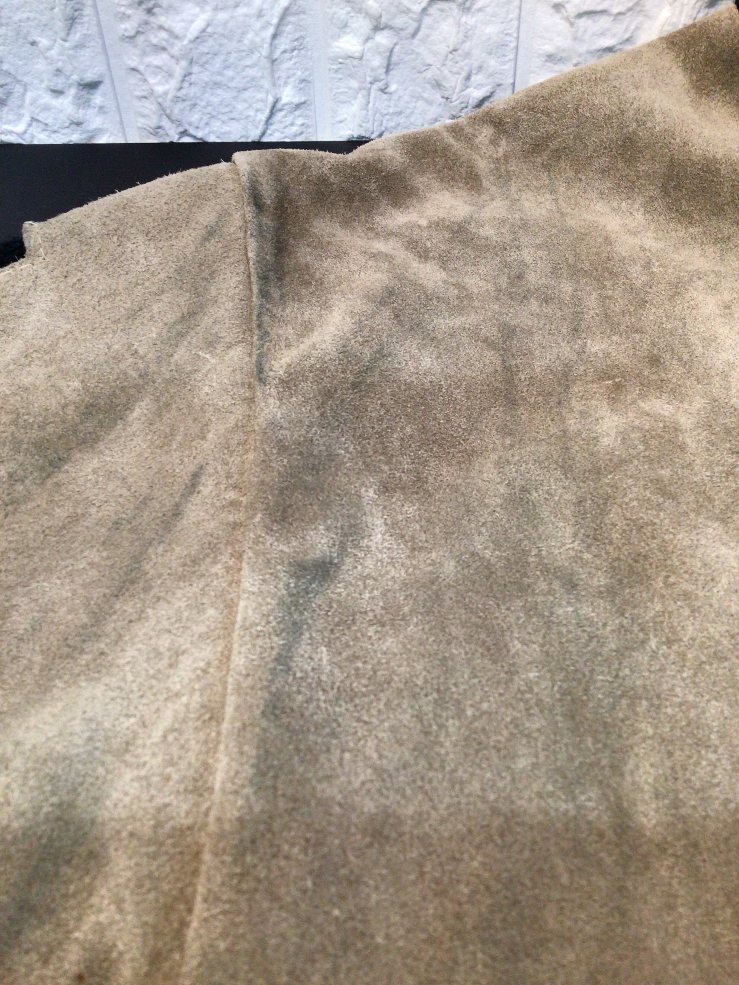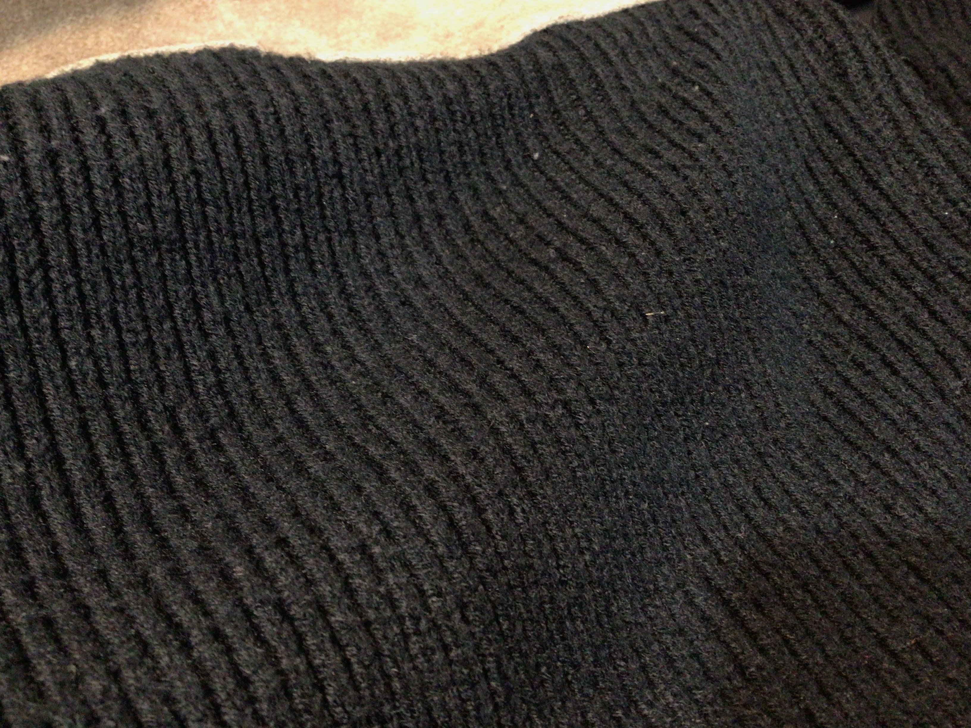 両脇付近に黒ずみ汚れがあります。使用感のある生地の毛羽立ち、毛玉などあります。
