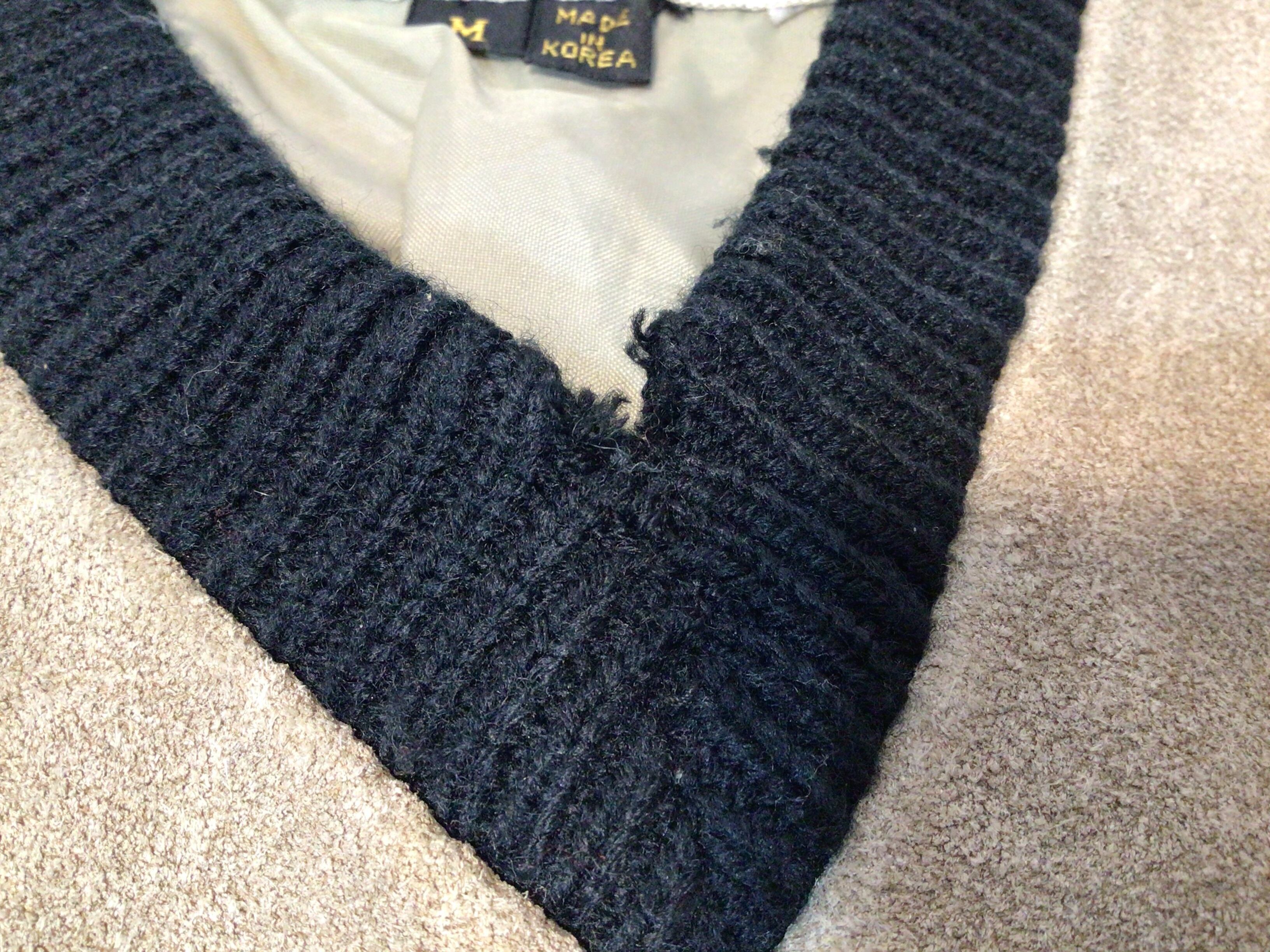 Vネックの中央部分に糸のほつれ、破れがあります。