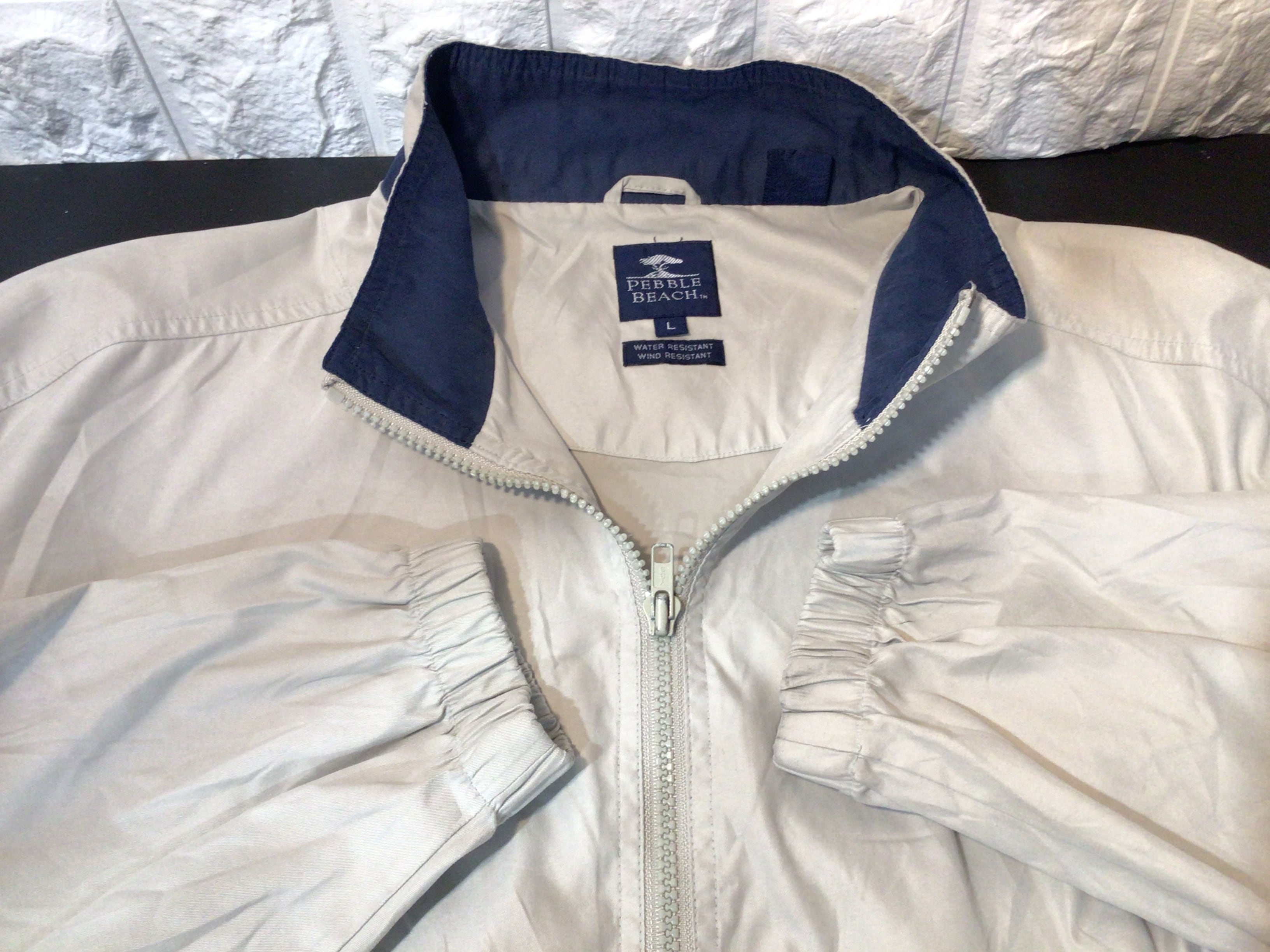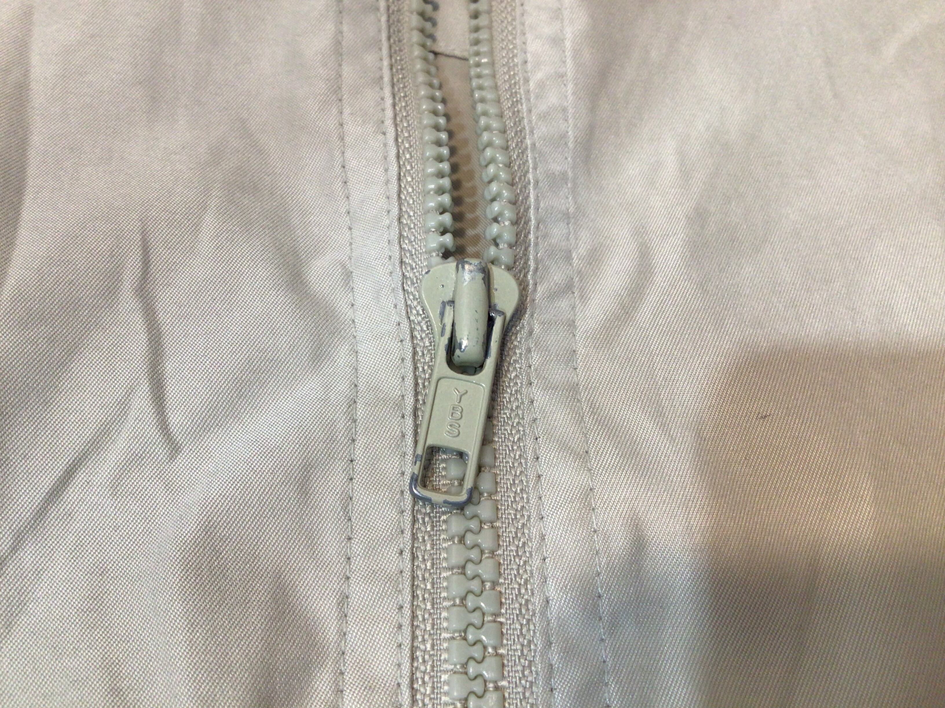 袖口に小さなシミがあります。ファスナーにメッキ剥がれがあります。