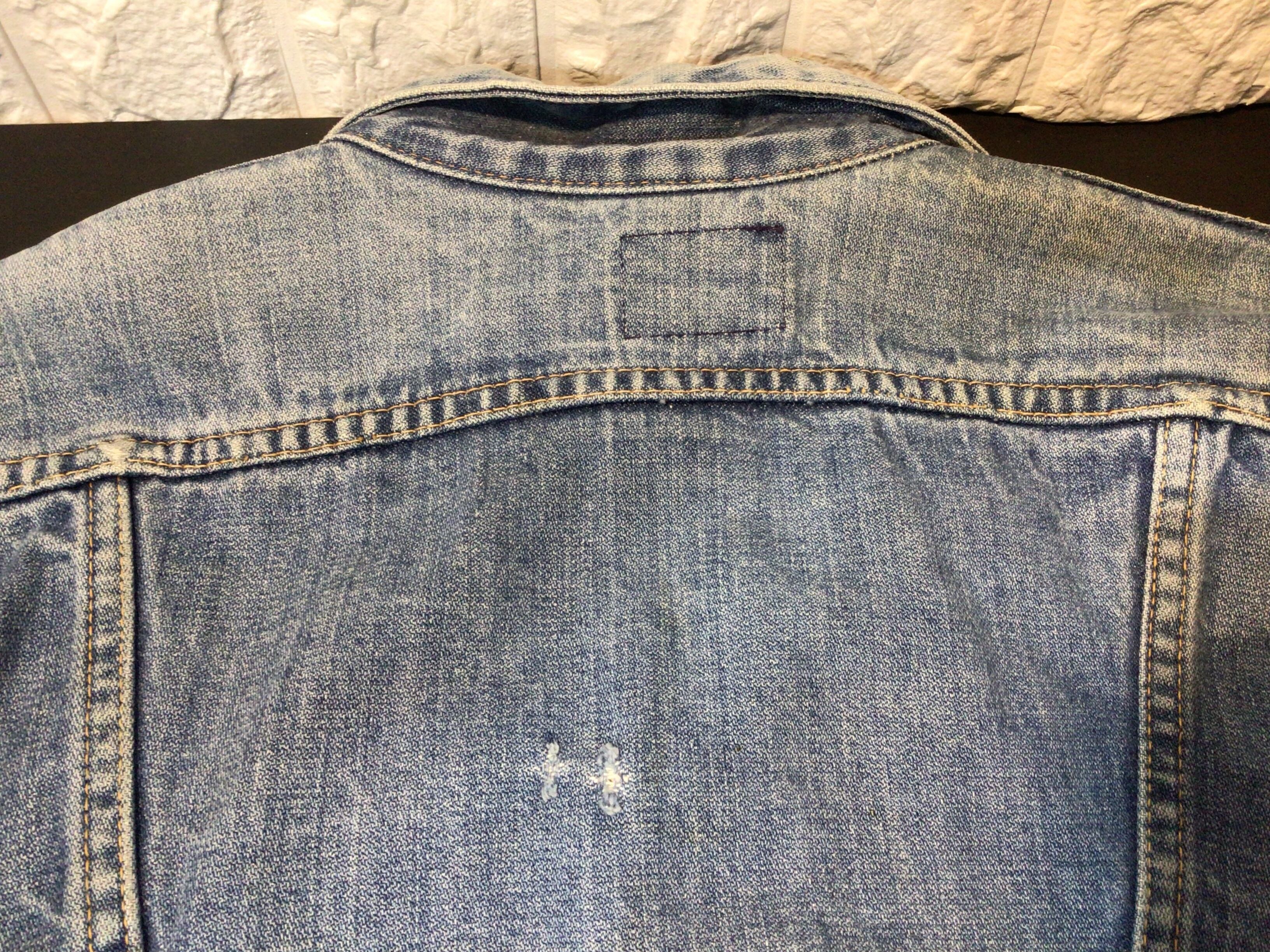 背面の中央部分に2箇所、襟周りに破れがあります。