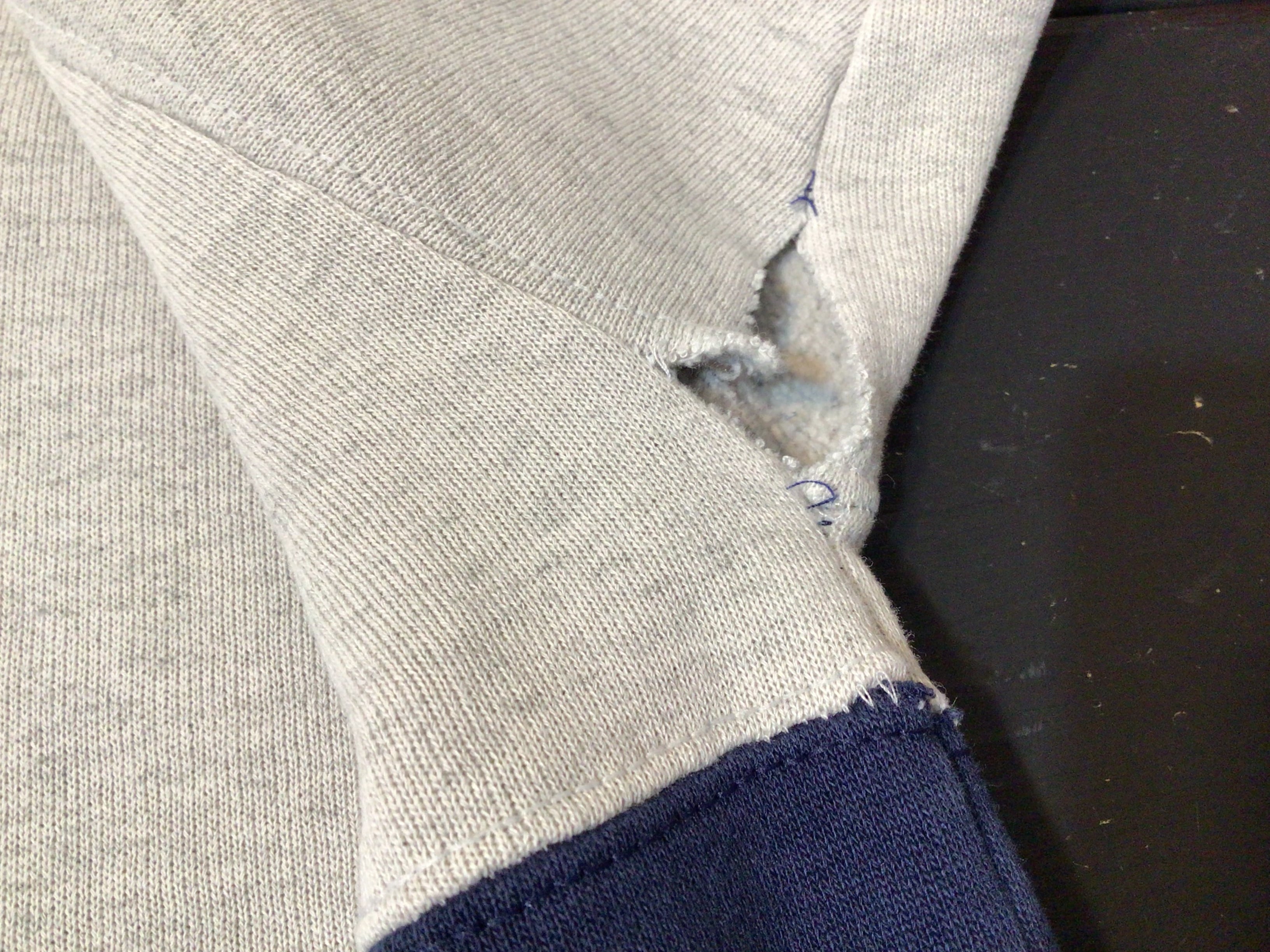 左脇部分に破れ、左脇部分に少しほつれがあります。