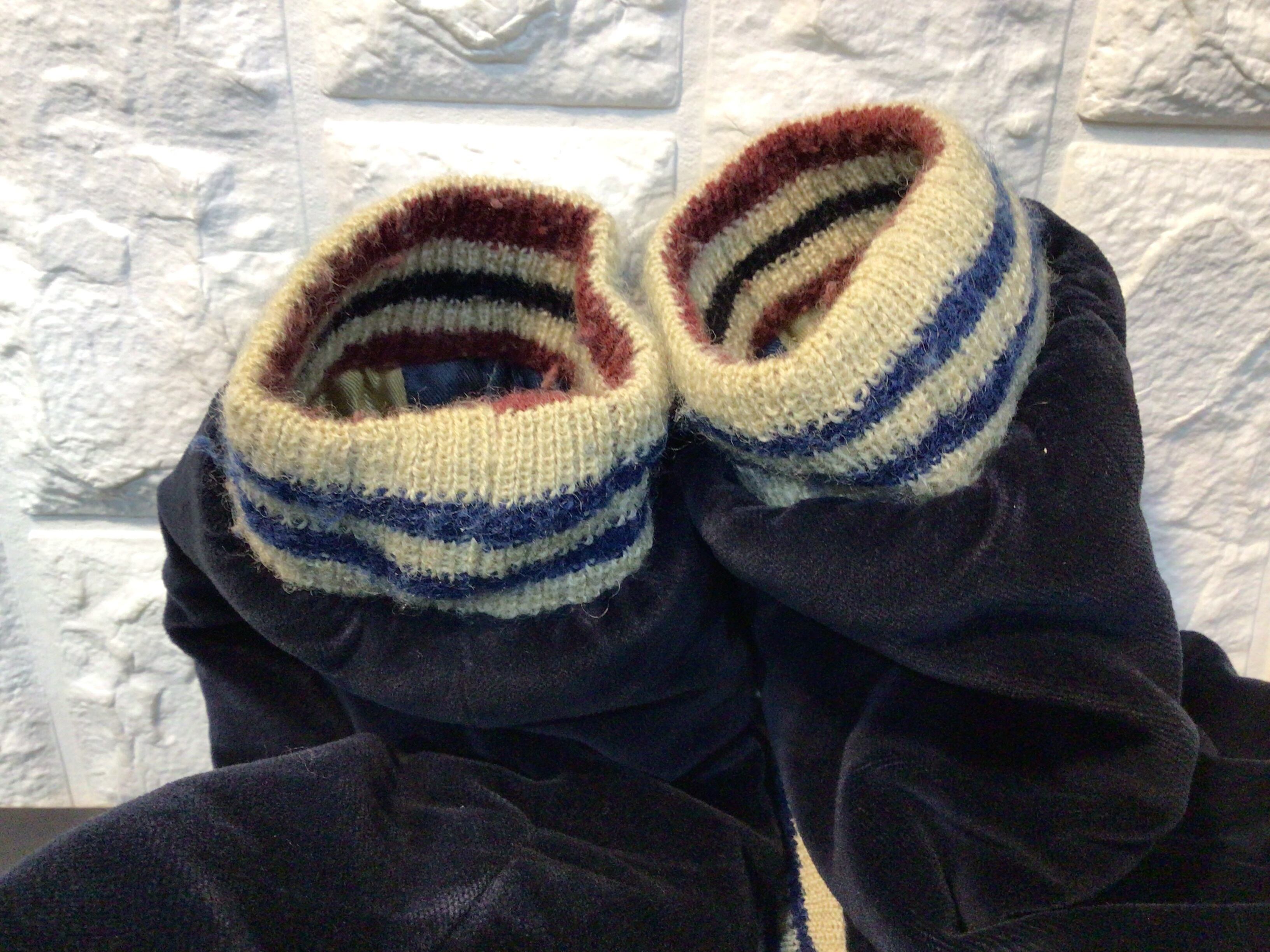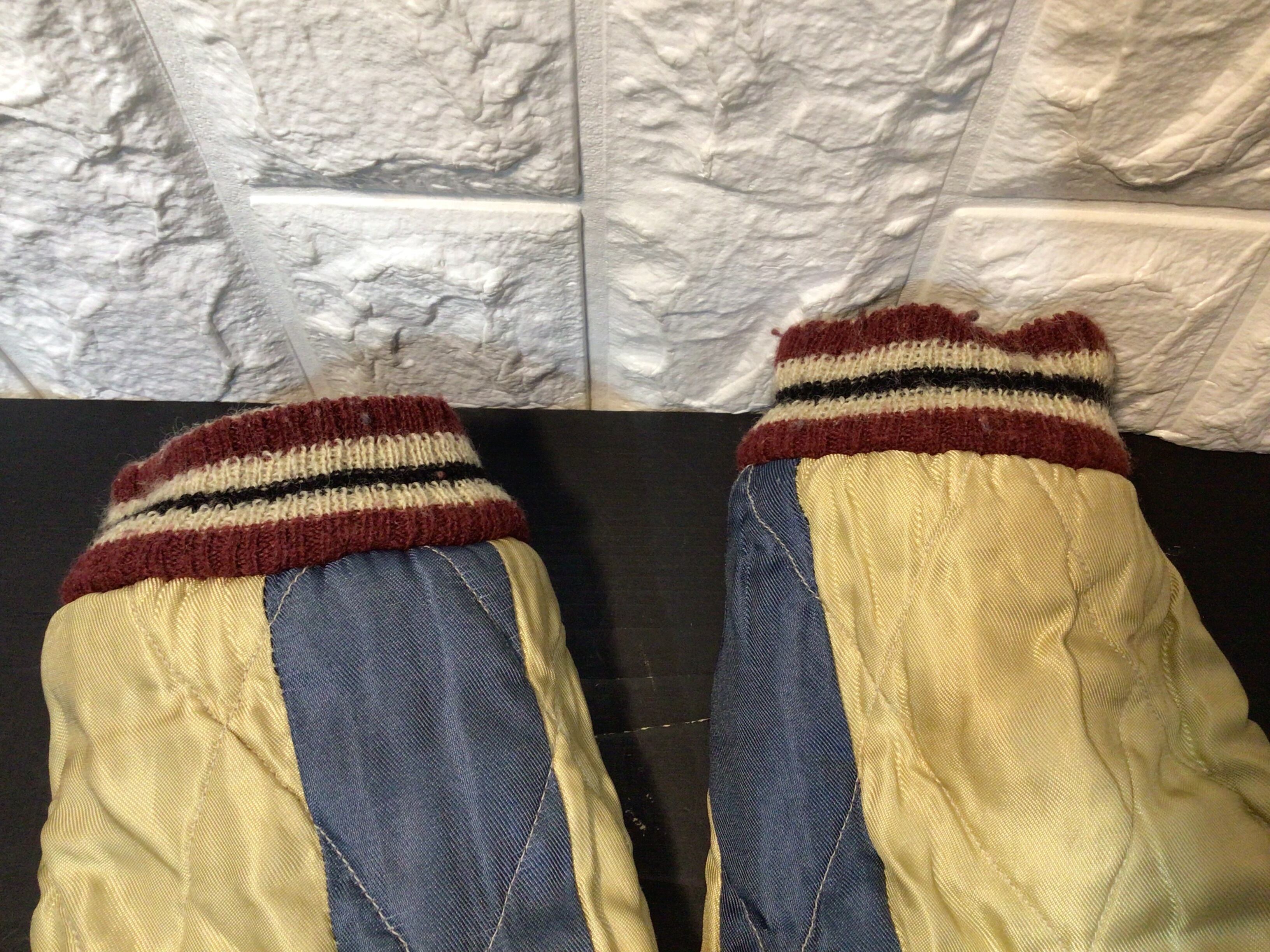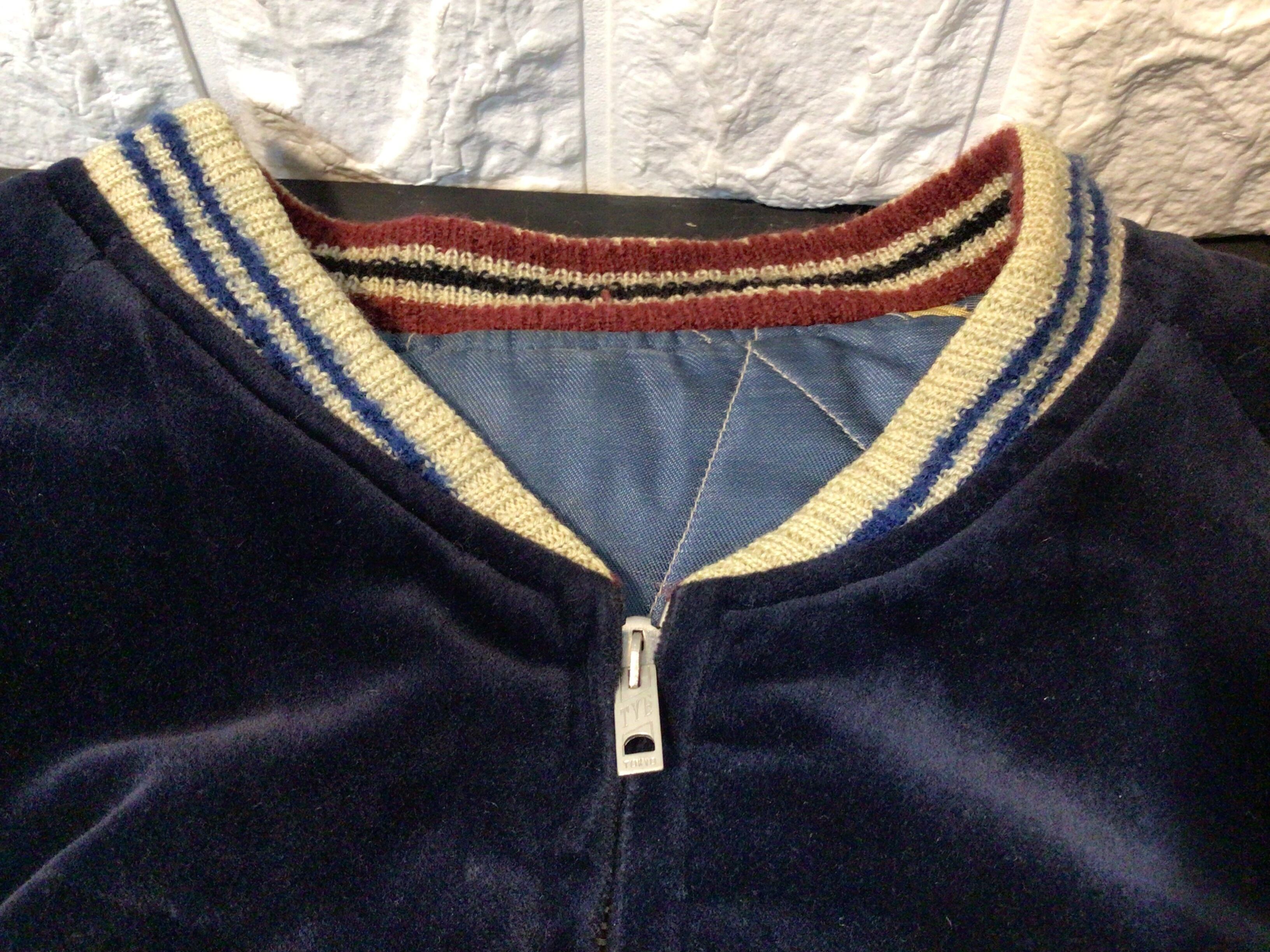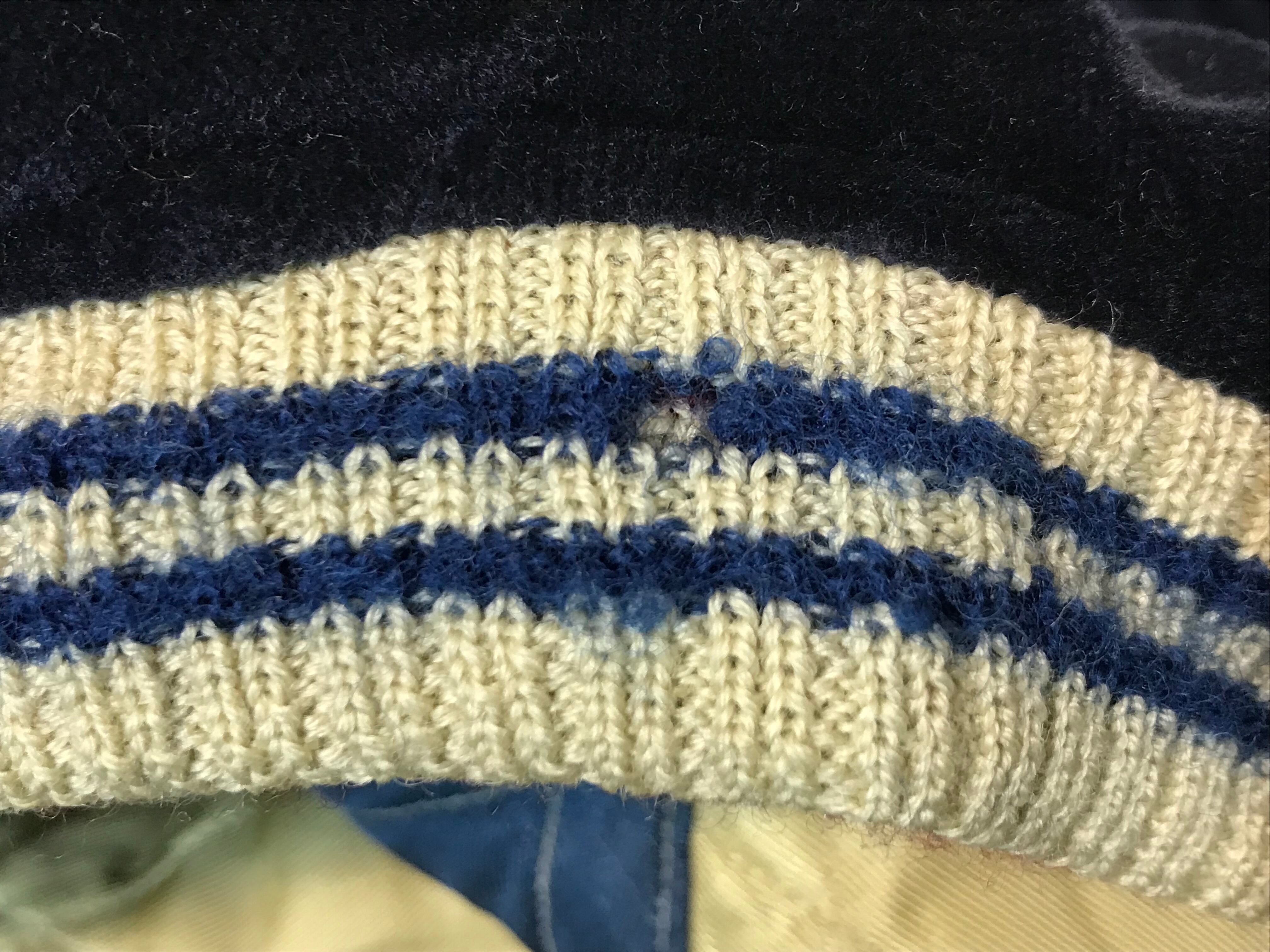 襟周り、袖口、裾部分のリブが使用感のある生地のスレや毛羽立ち、毛玉などあります。