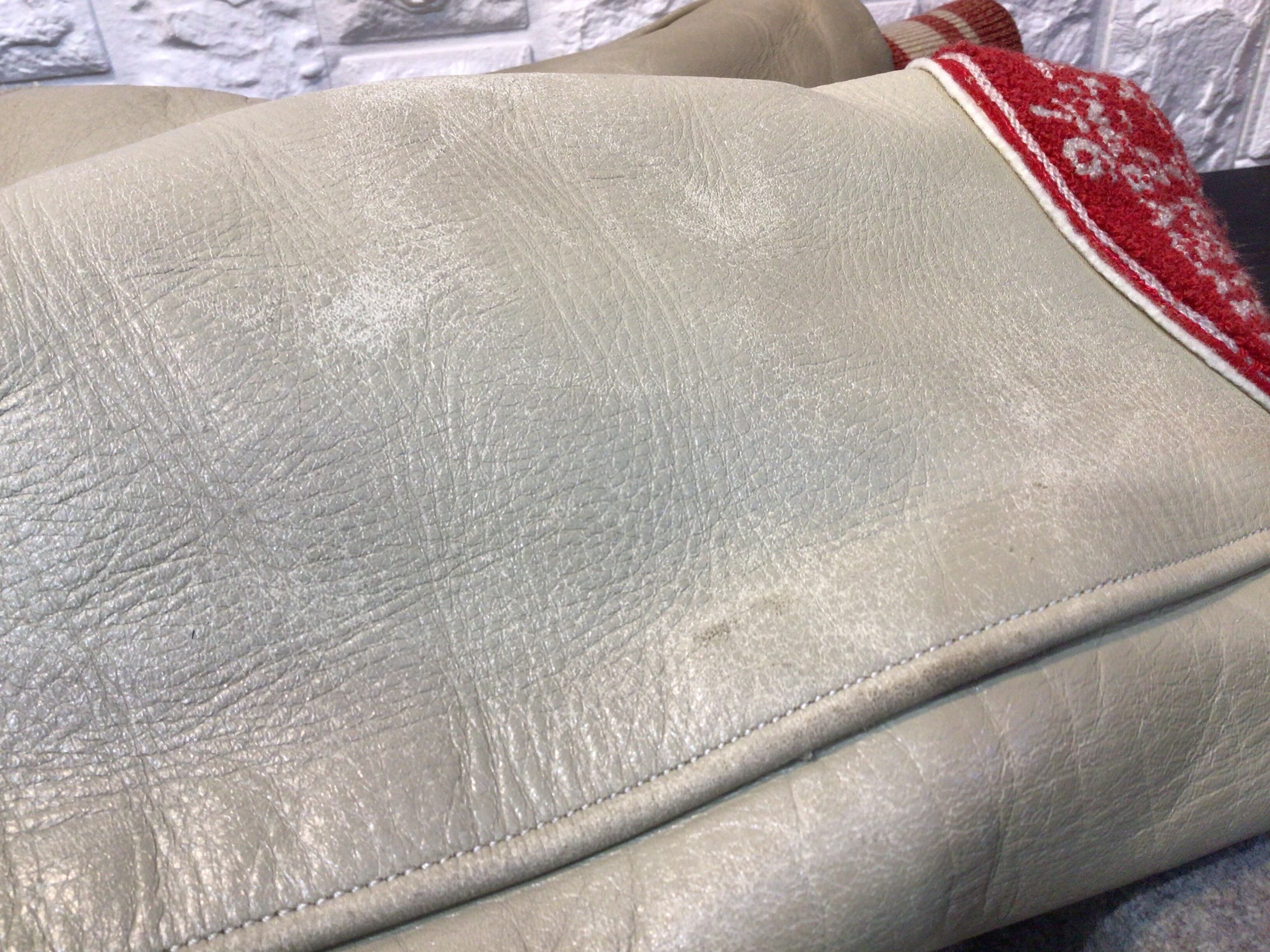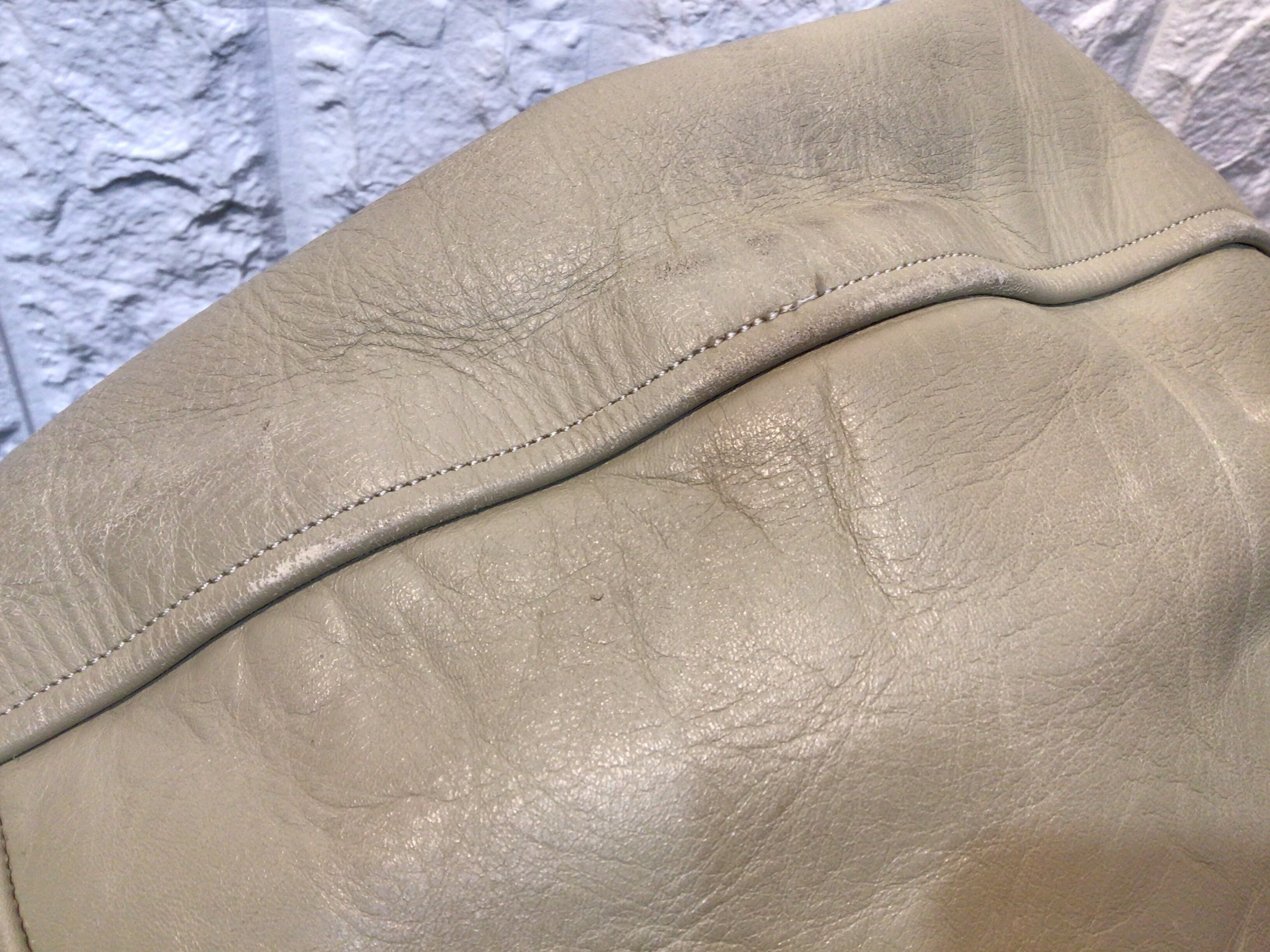 使用感のある生地のスレや毛羽立ち、毛玉、革部分に汚れやひび割れなどあります。