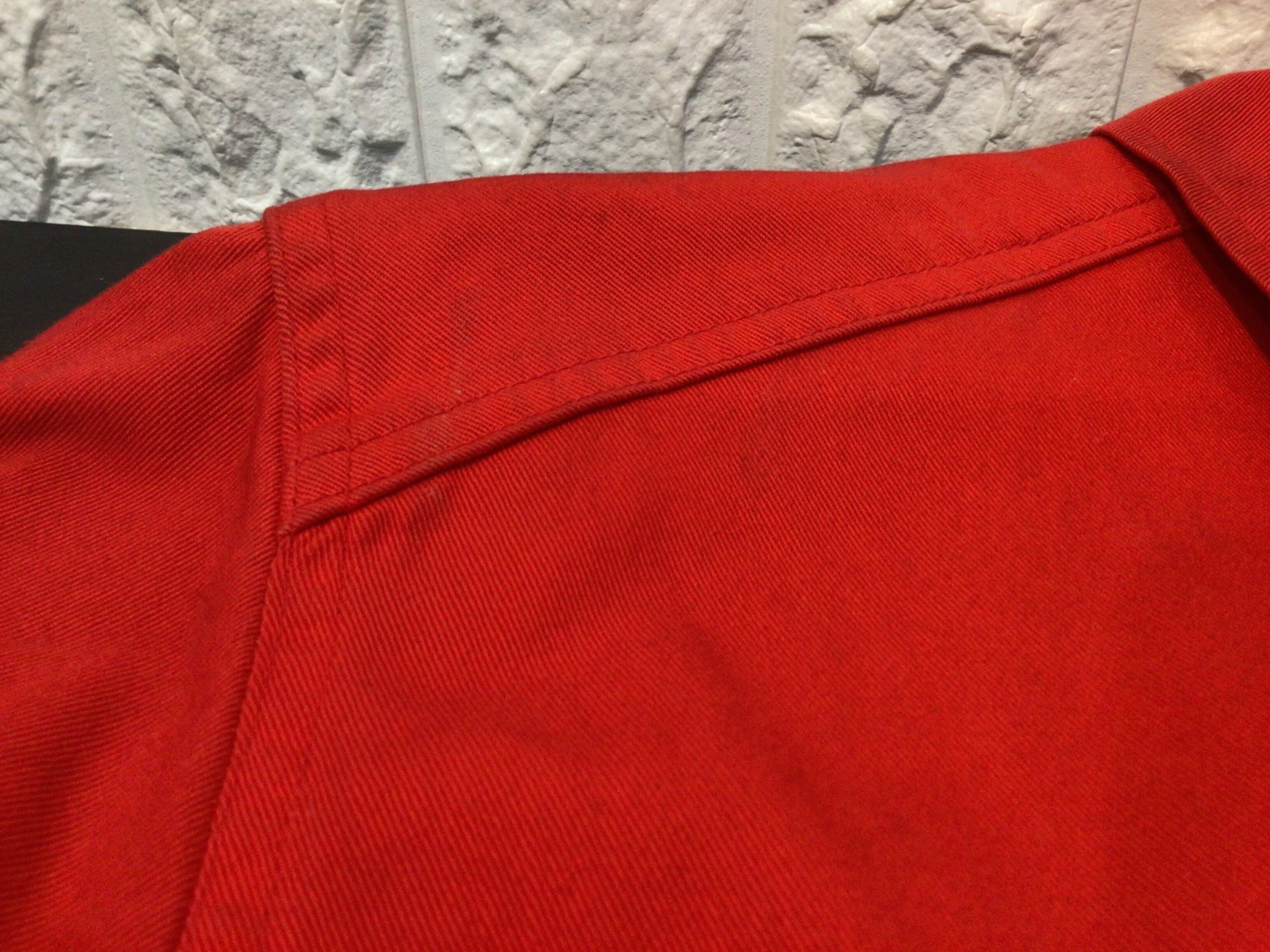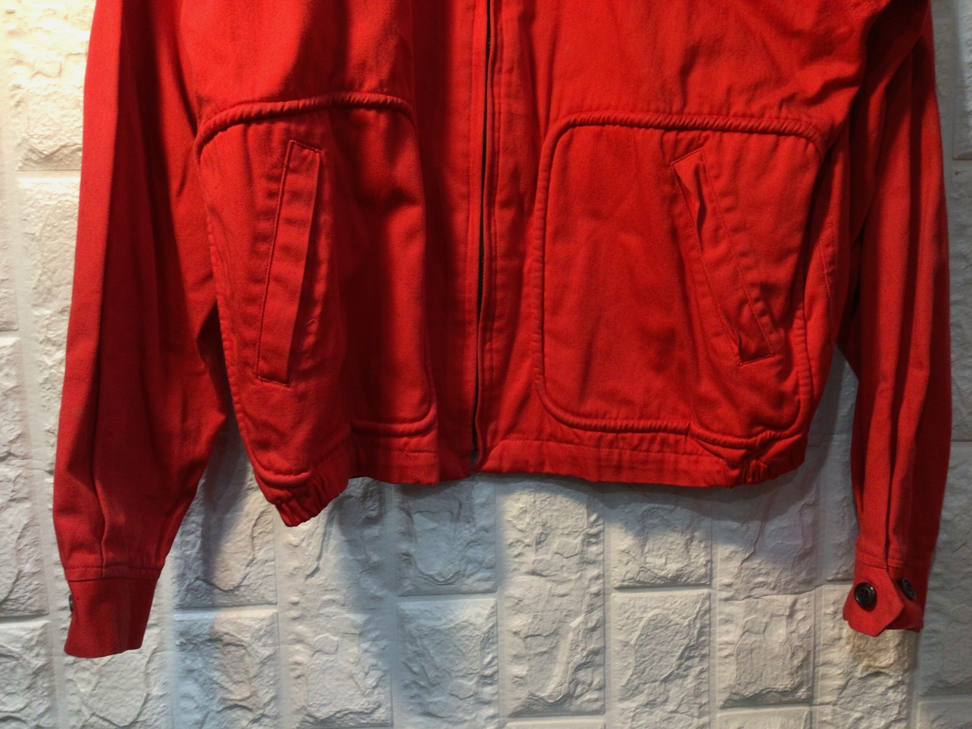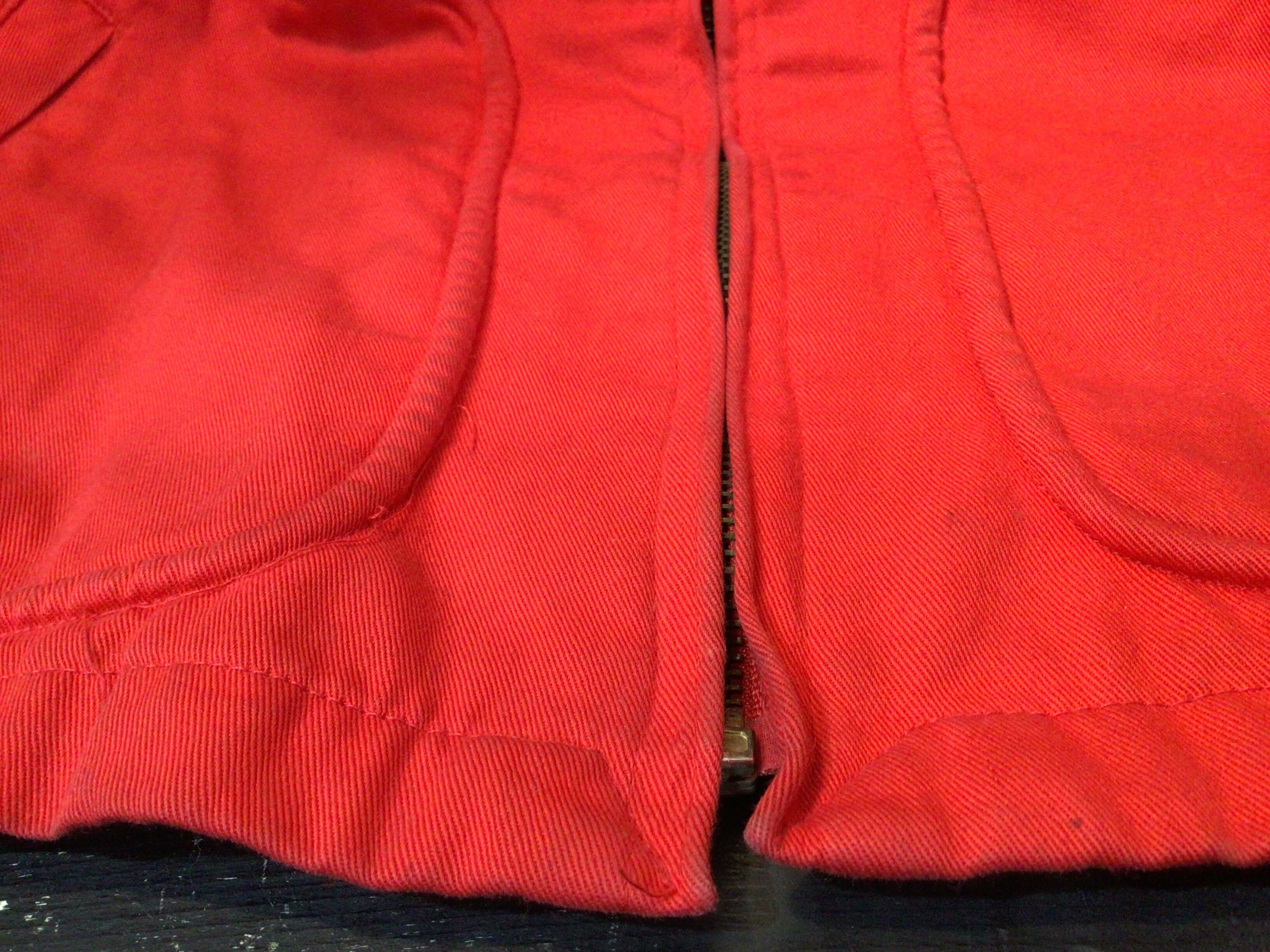 襟周りや袖口部分など全体的に使用感のある生地のスレや汚れやシミなど多くあります。