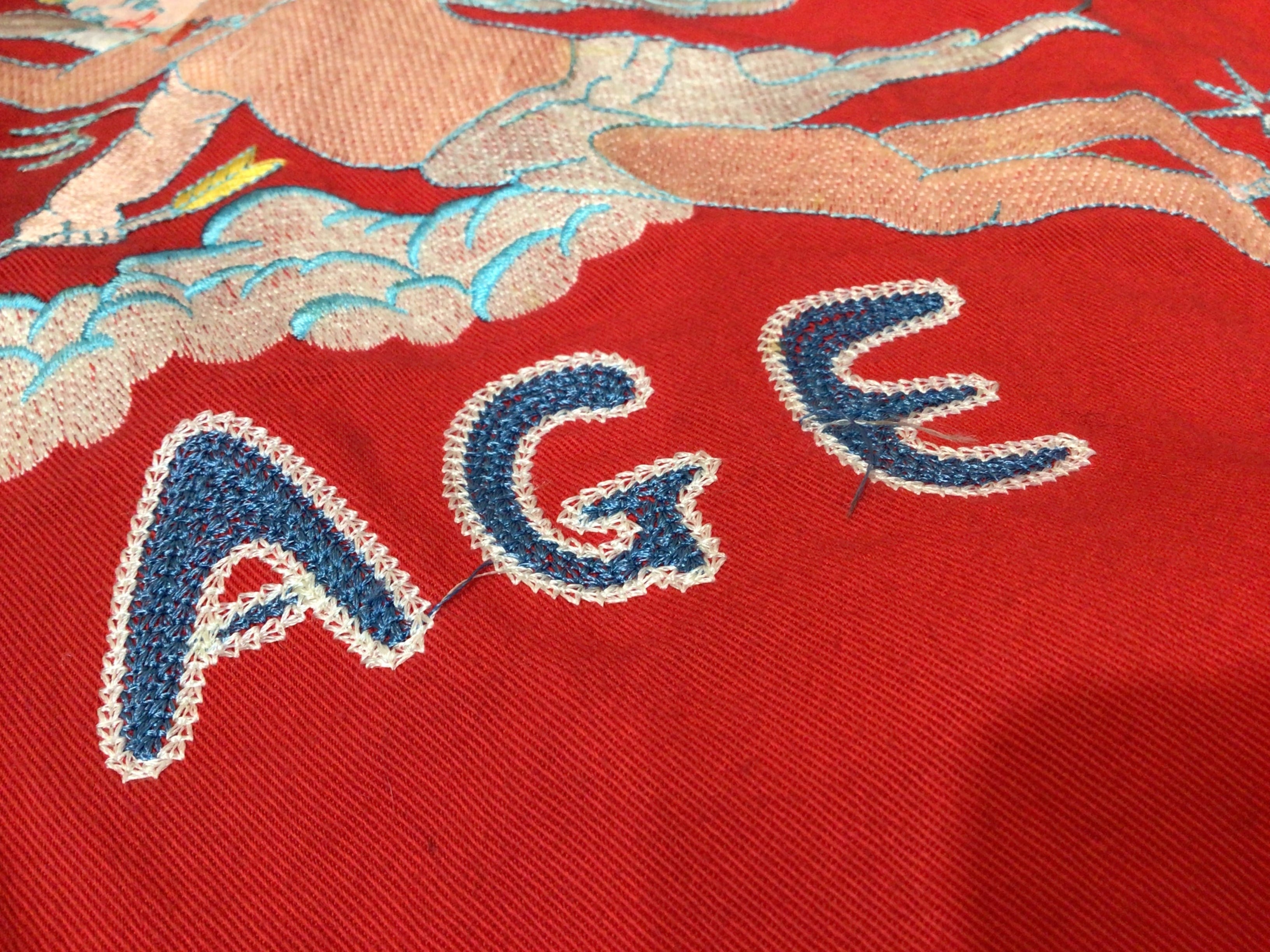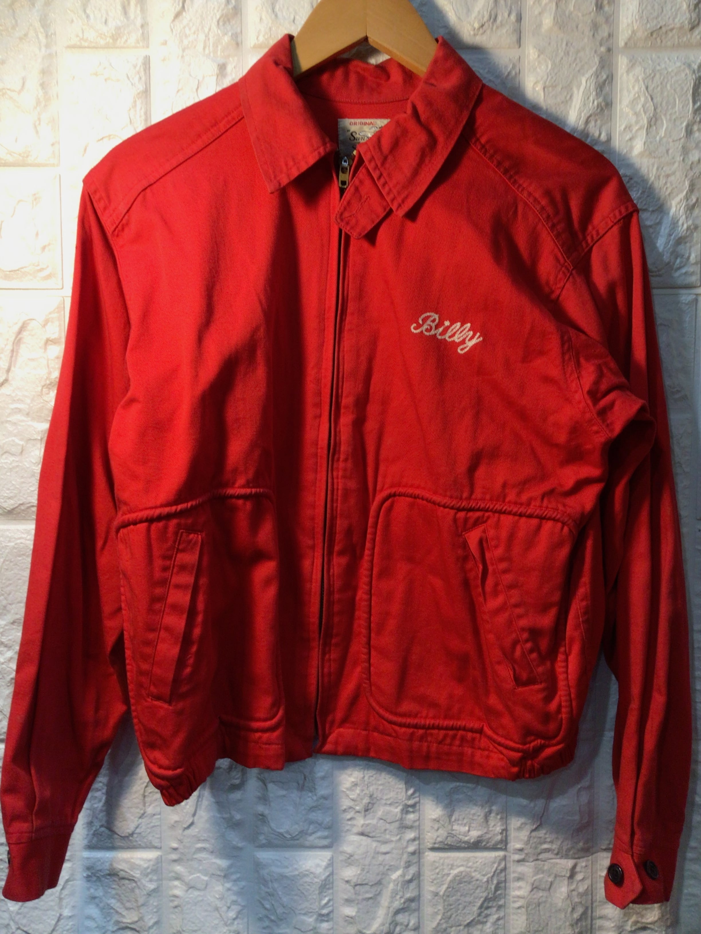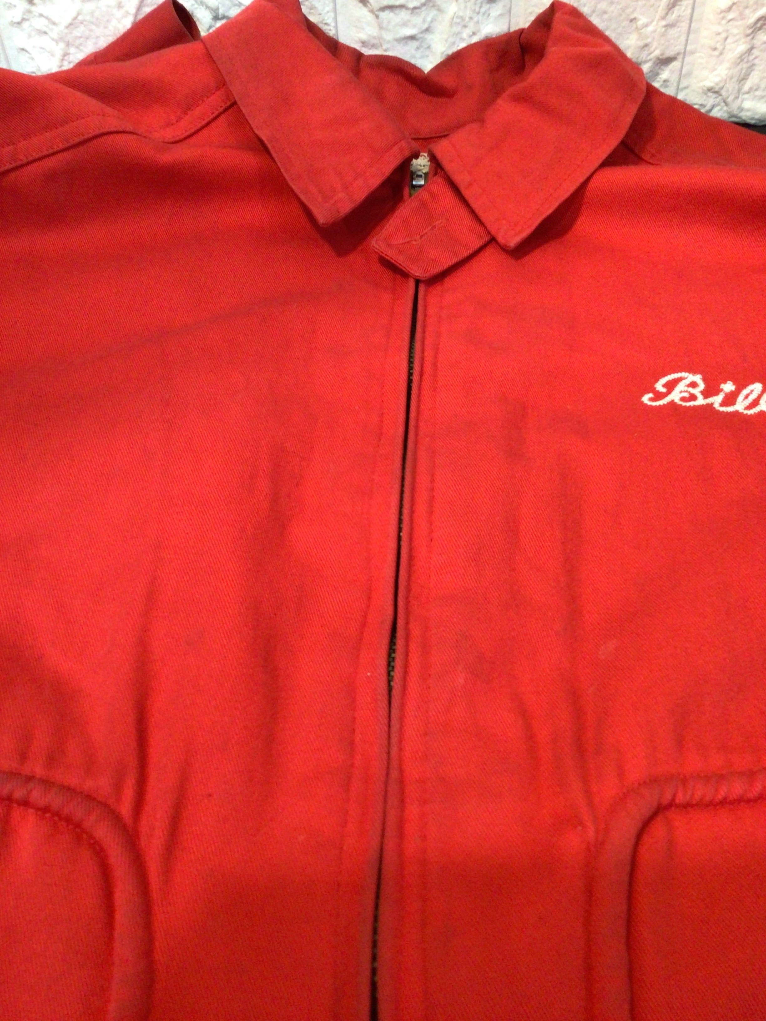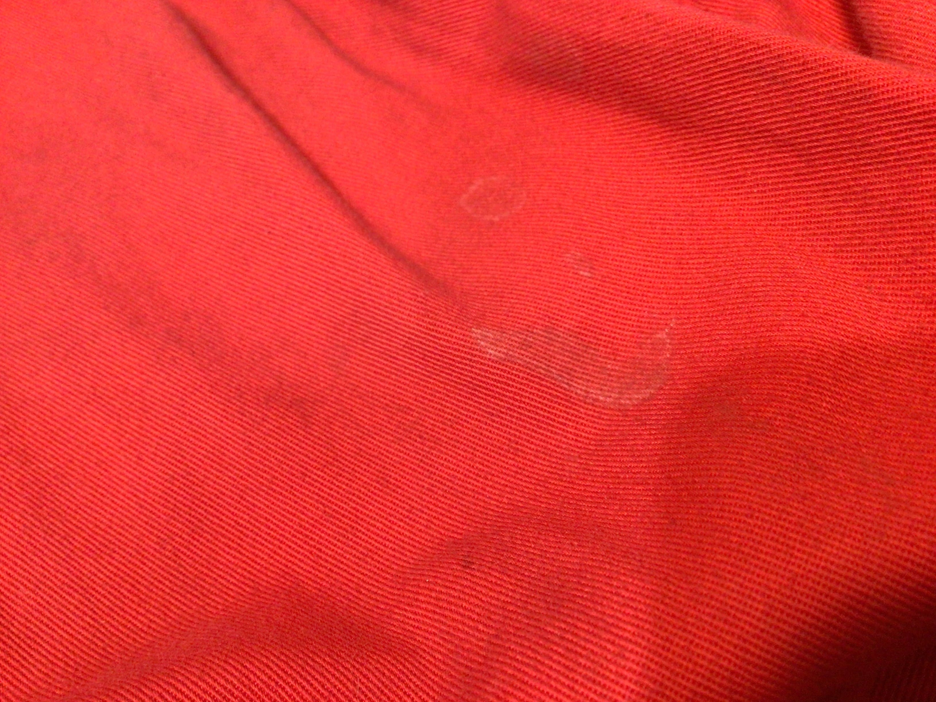 襟周りや袖口部分など全体的に使用感のある生地のスレや汚れやシミなど多くあります。