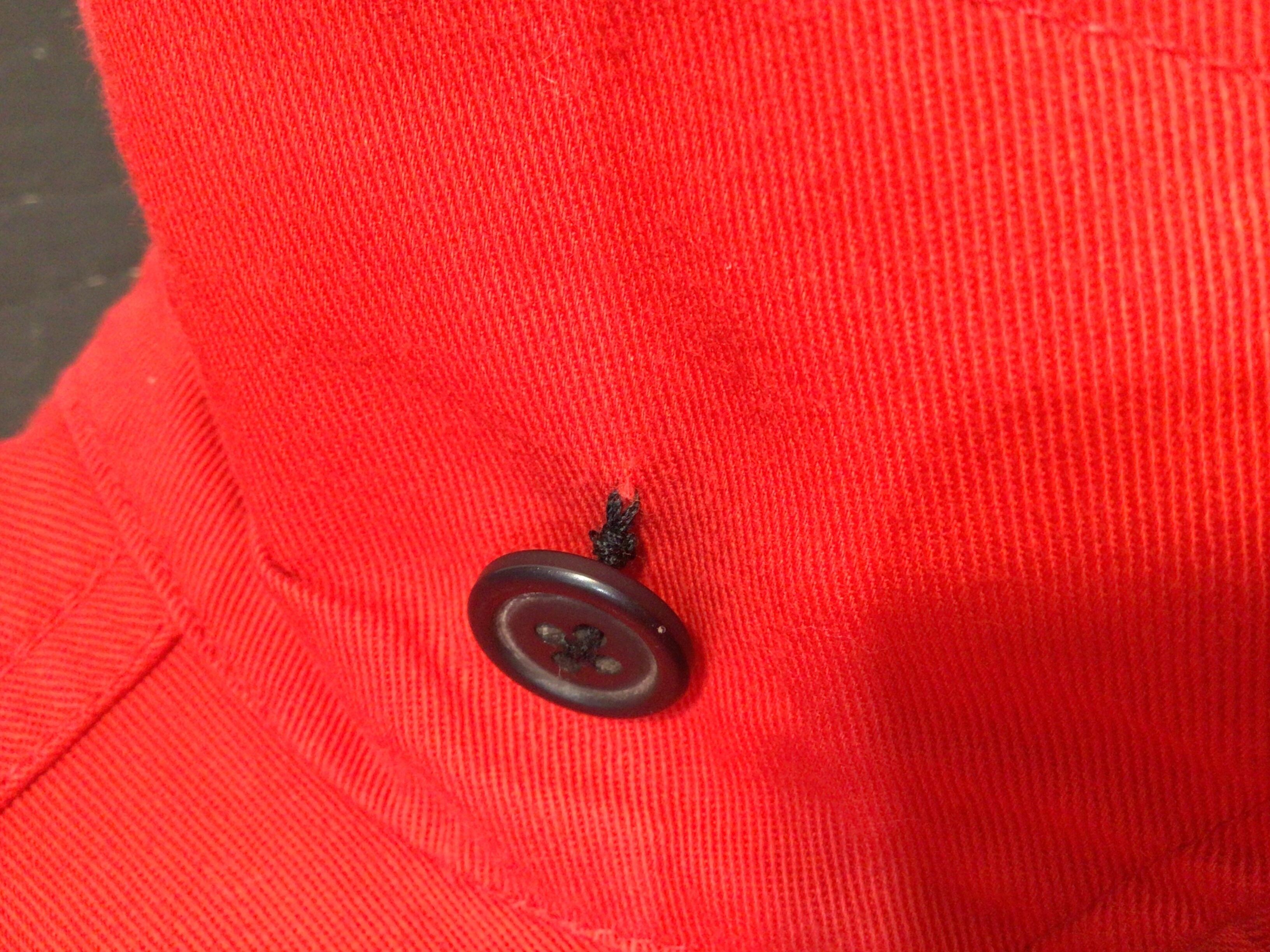 右襟元のボタン糸が緩んでいます。