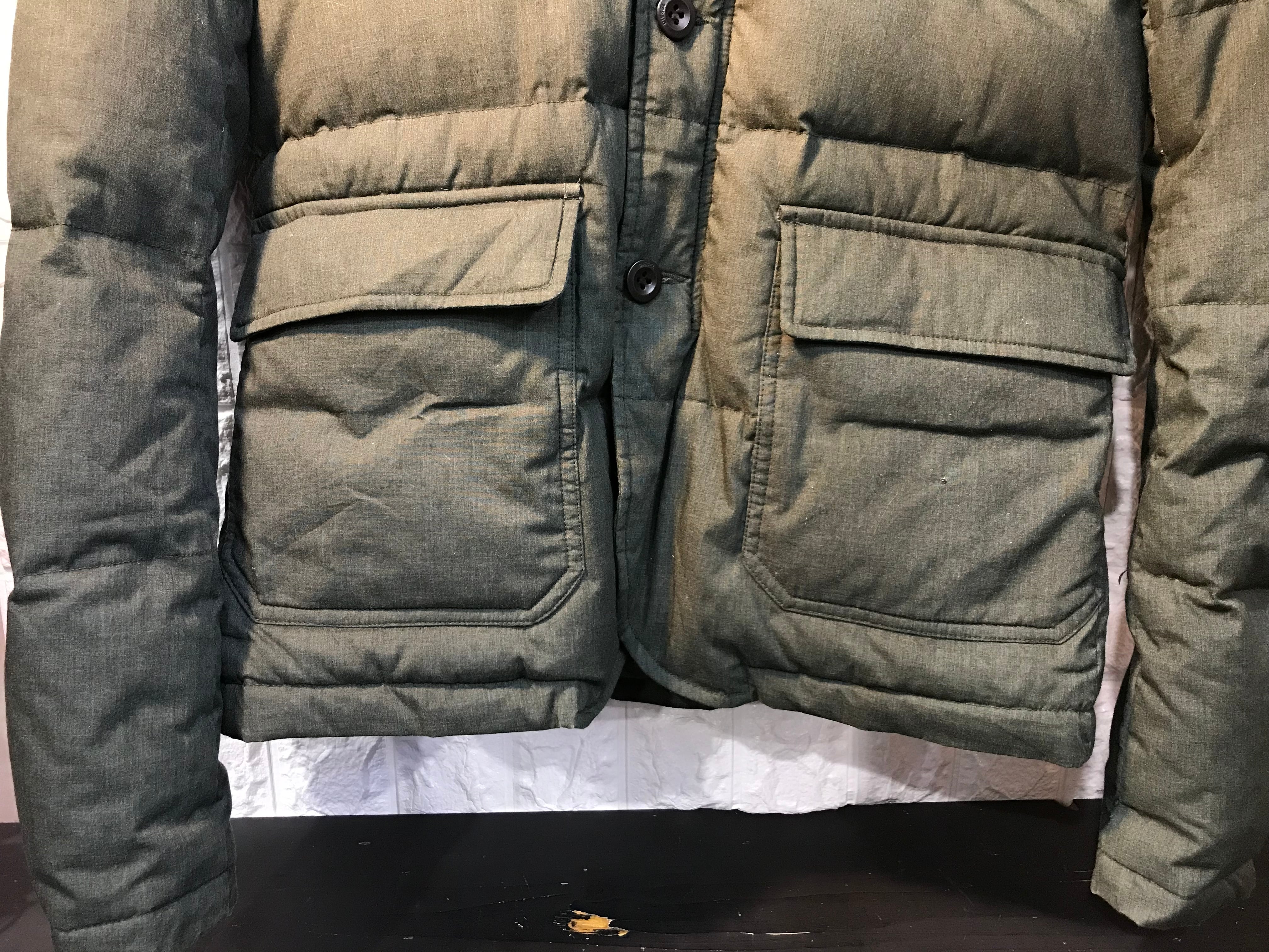 左下ポケットに一箇所小さな穴、右脇にほつれがあります。