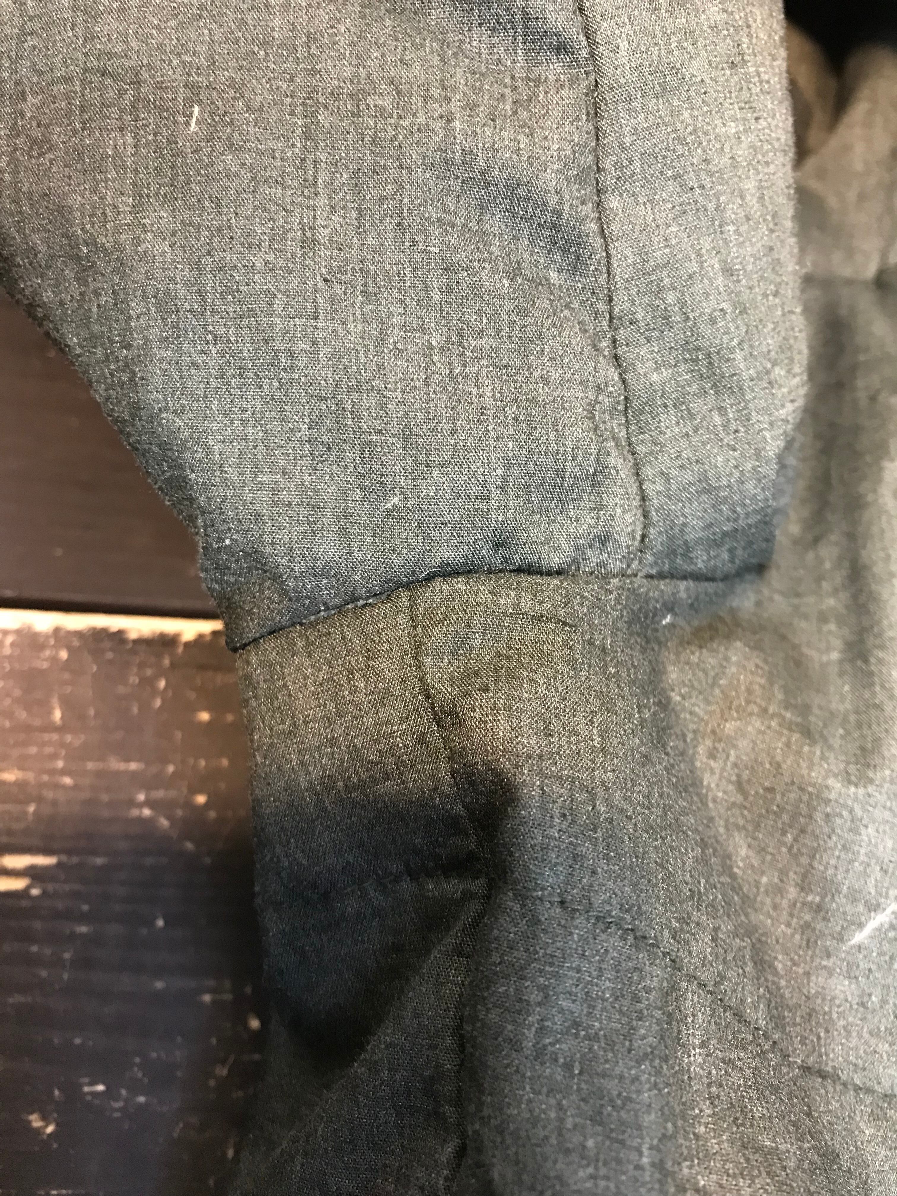 襟周り、袖口部分に若干の色褪せがあります。