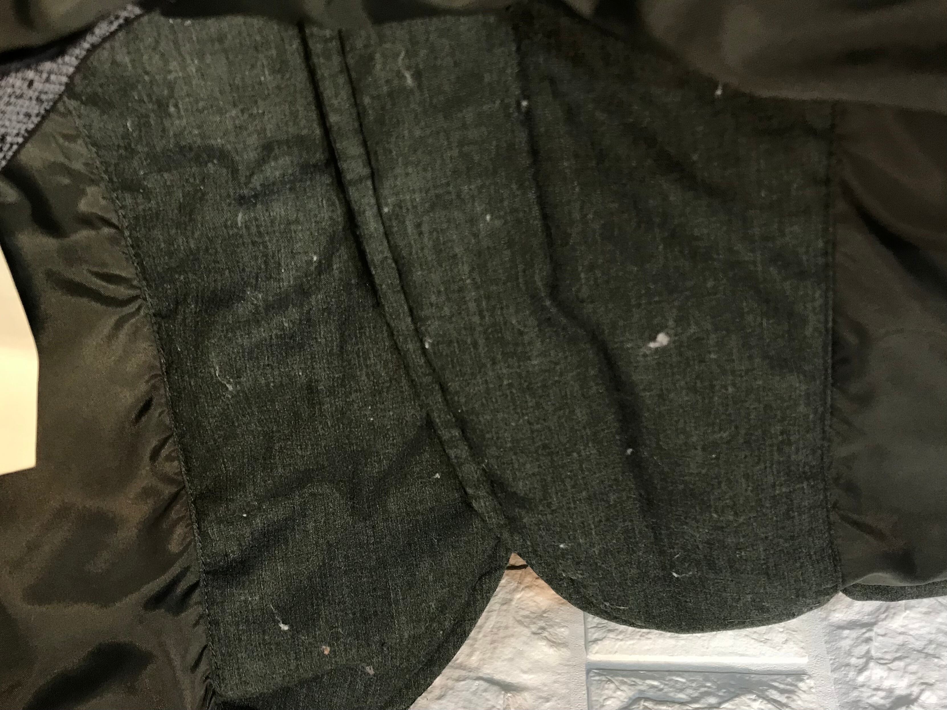 若干の使用感のある生地のスレなどあります。特に裏地部分に使用感のある生地の毛羽立ち、毛玉などあります。