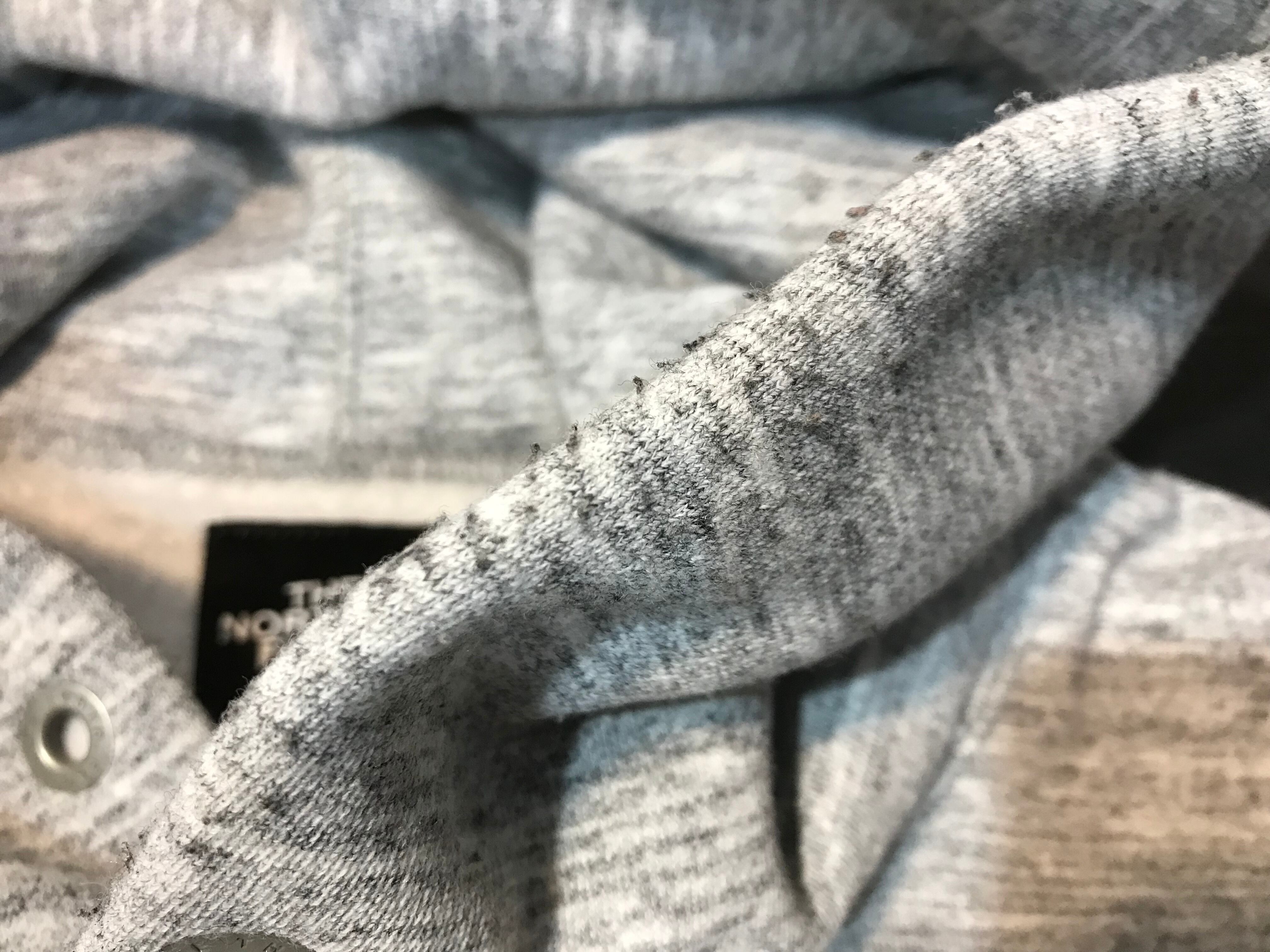 袖口や襟周りなどに使用感のある生地のスレや毛羽立ち、毛玉などあります。