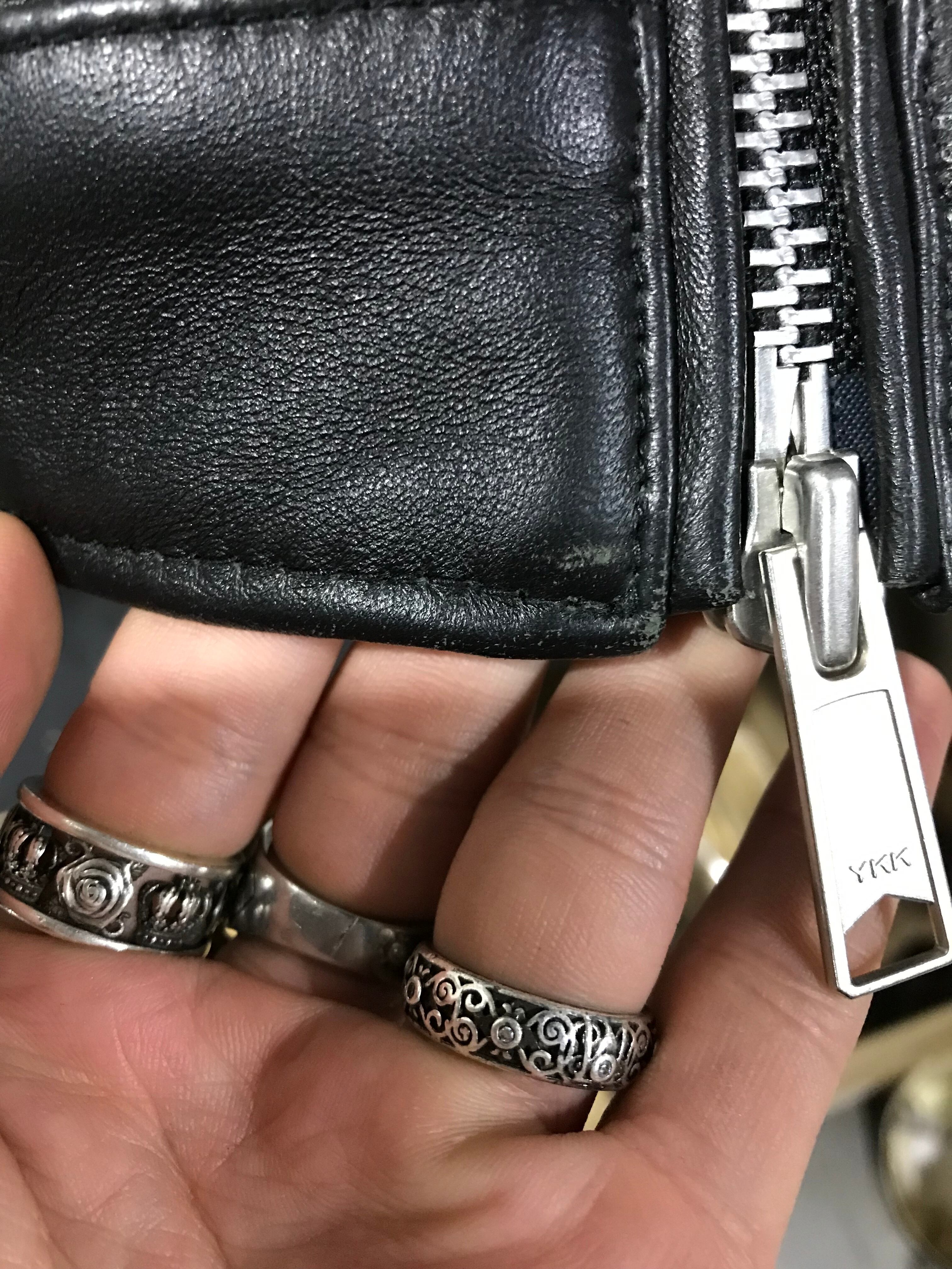 両袖部分やジッパーライン、ポケット付近に使用感のある生地の色褪せがあります。