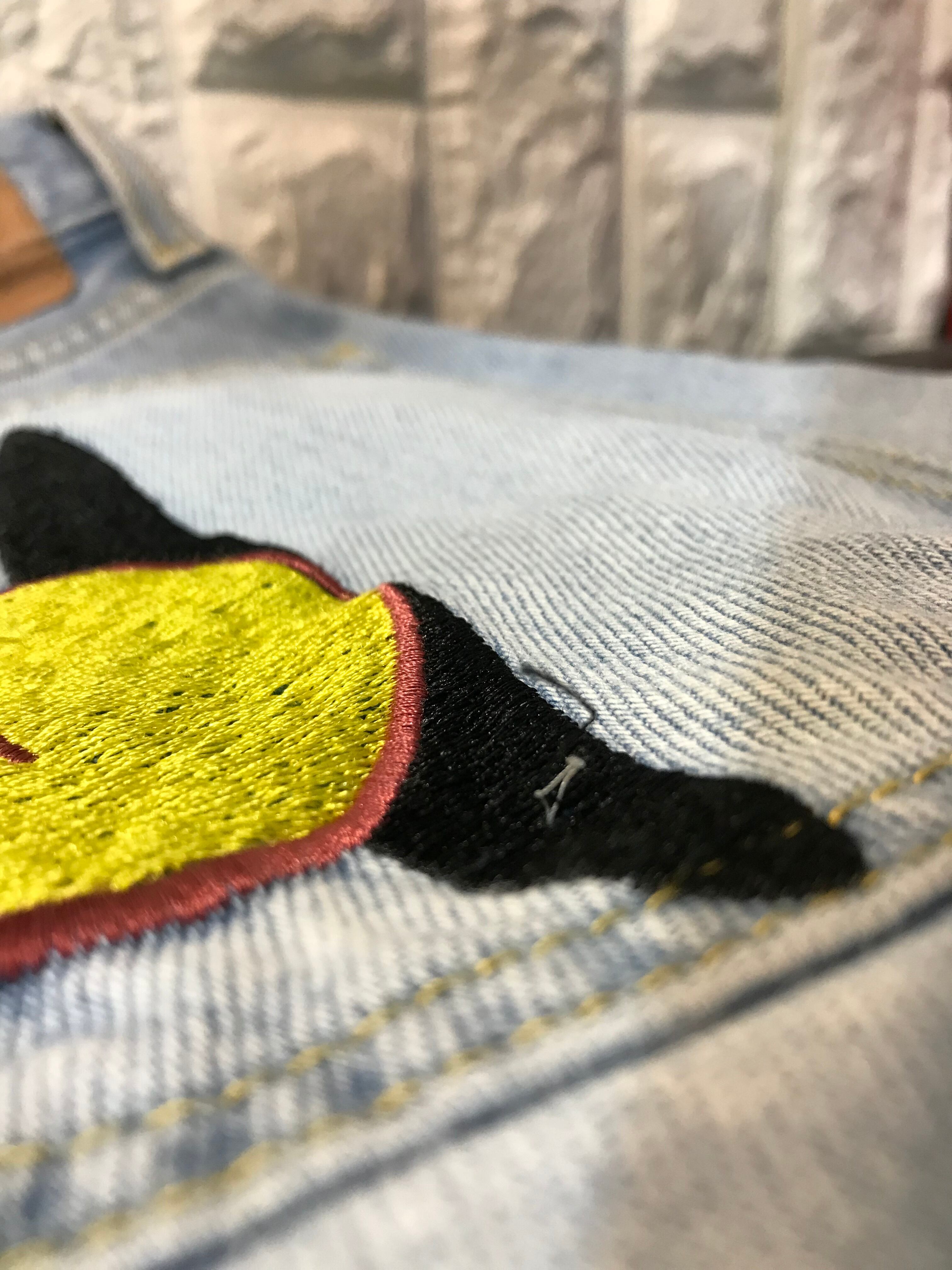 刺繍部分に少し糸のほつれがあります。革タグにシワや破れ、色褪せなどあります。