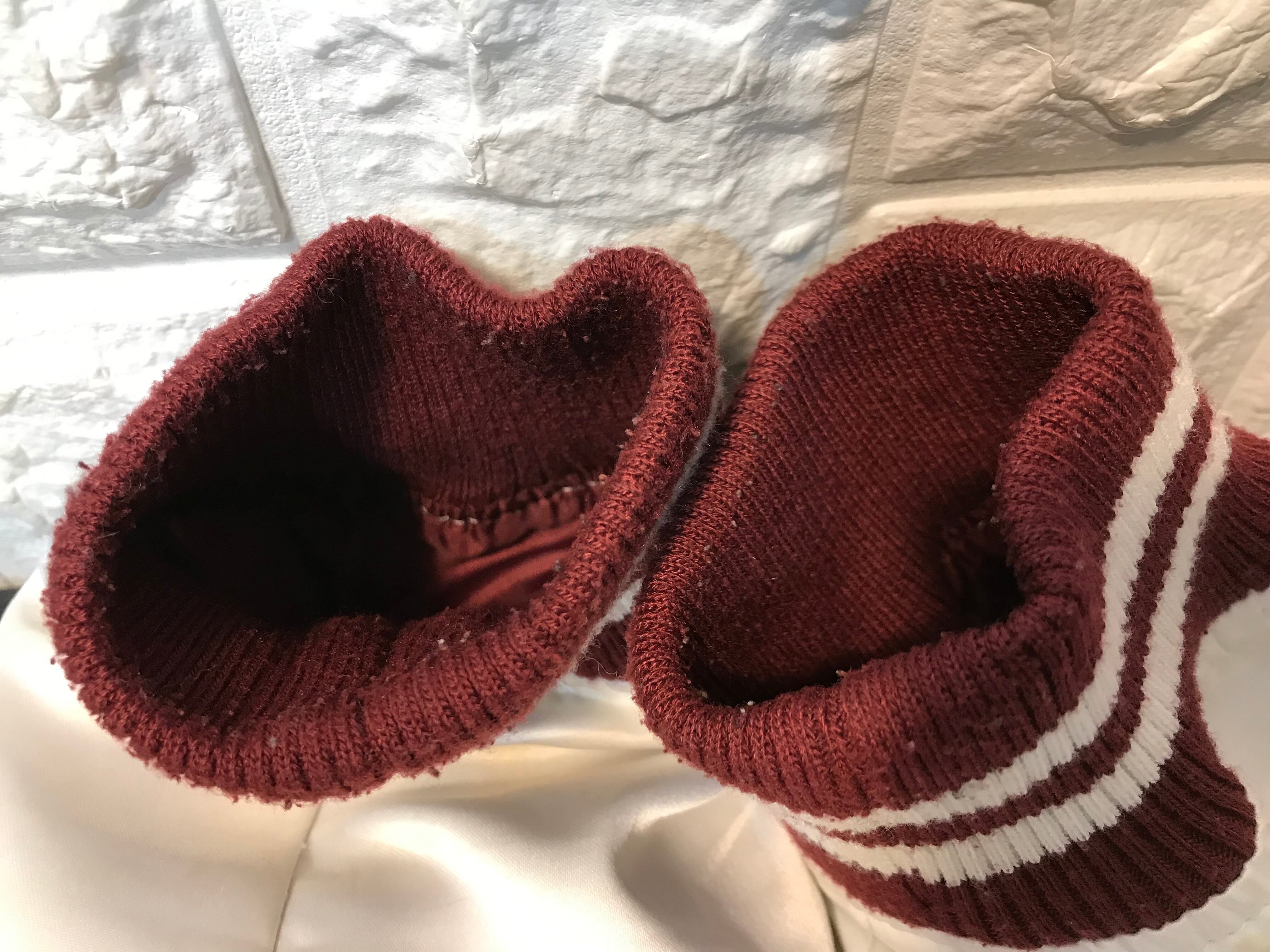 襟周り、袖口、裾のリブ部分に若干の使用感のある生地のスレや毛羽立ち、毛玉があります。