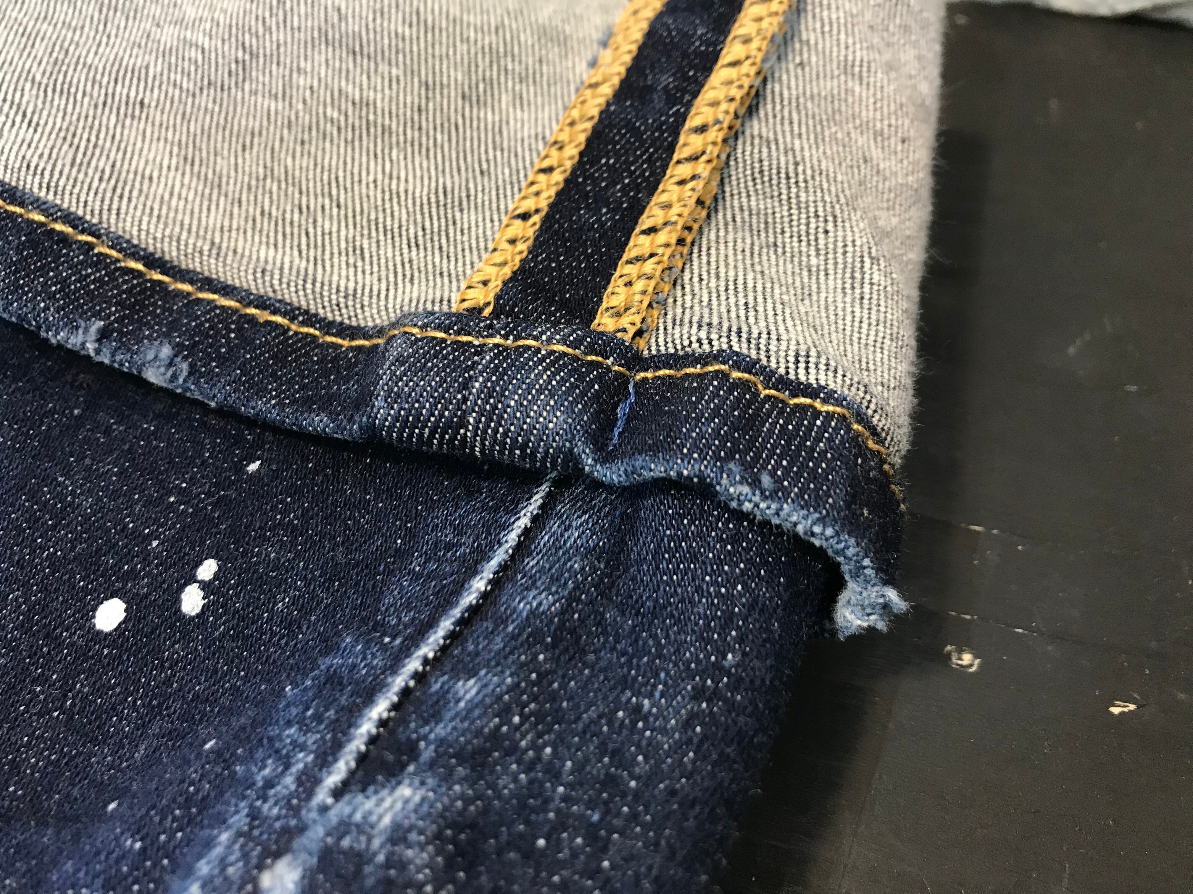 裾上げ折り返しで4箇所に縫い付け処理がされています。