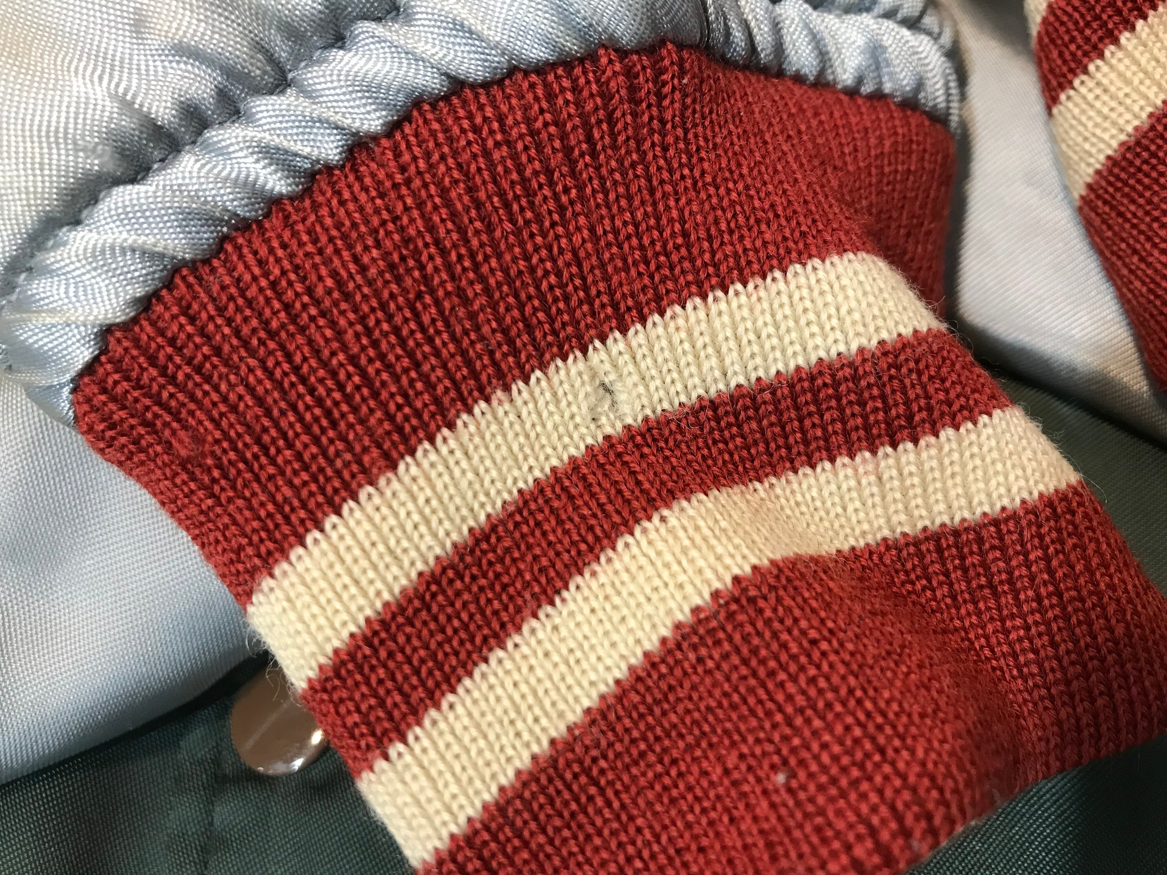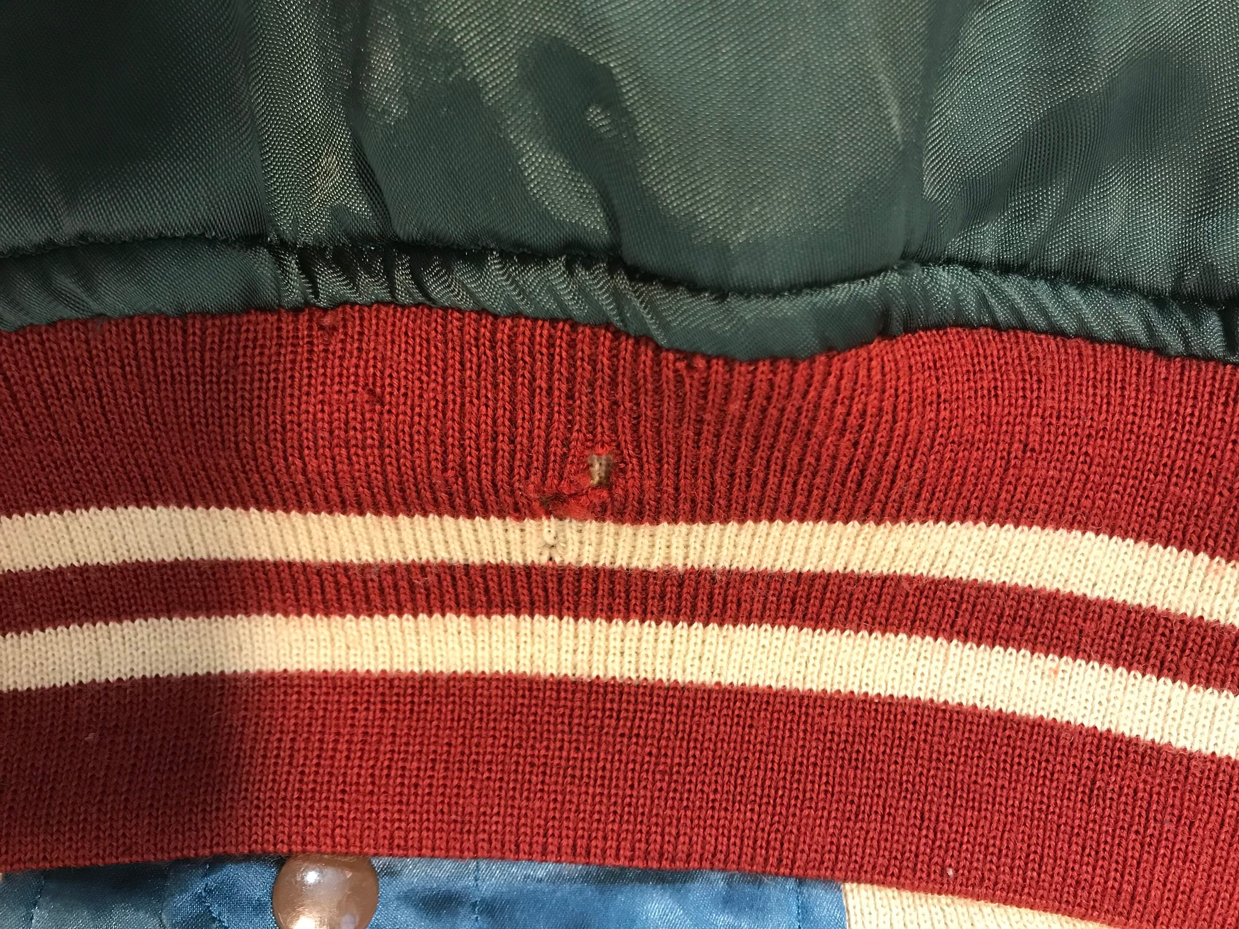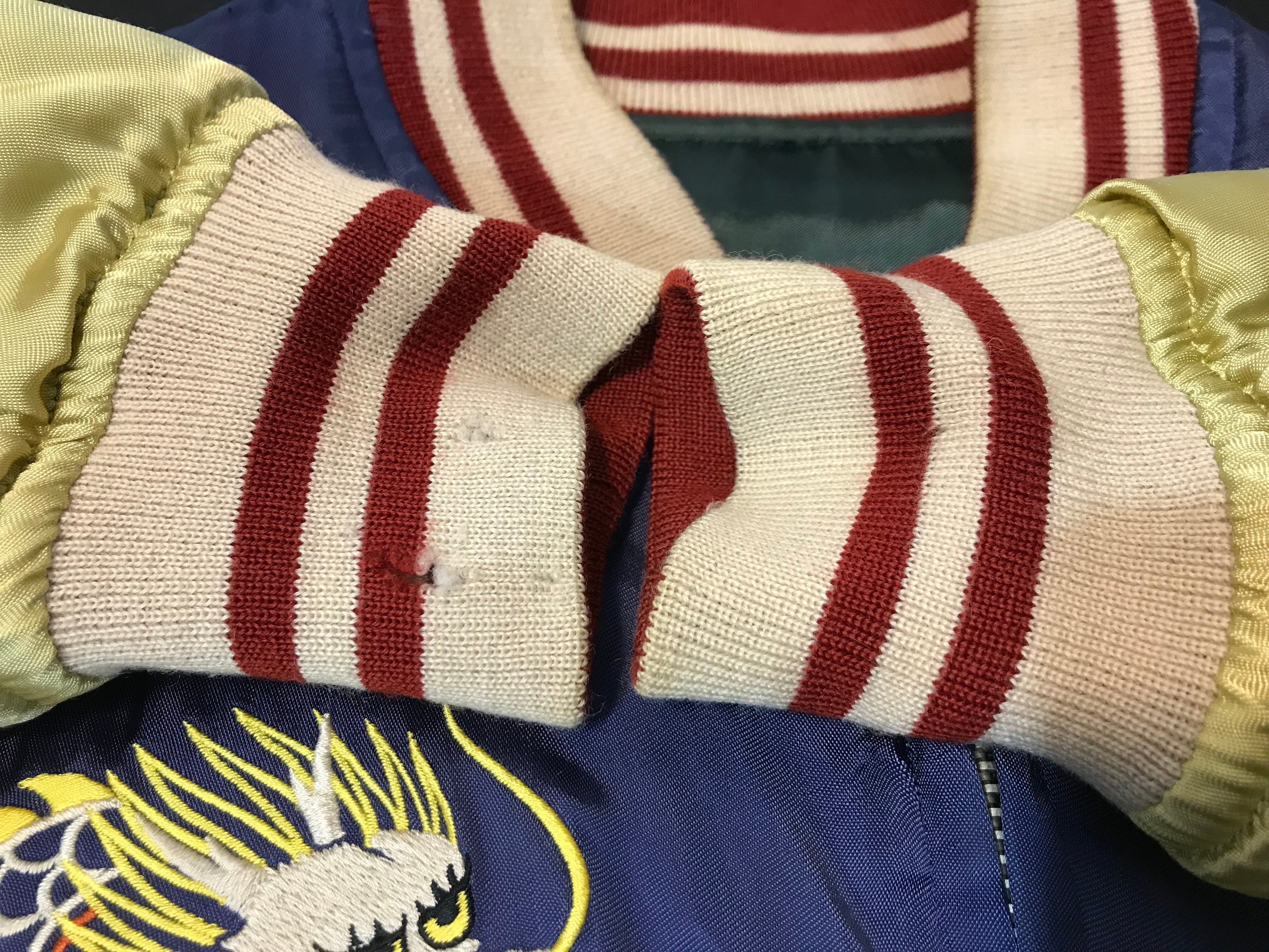 襟や袖口、裾のリブ部分に虫食い穴が数カ所あります。