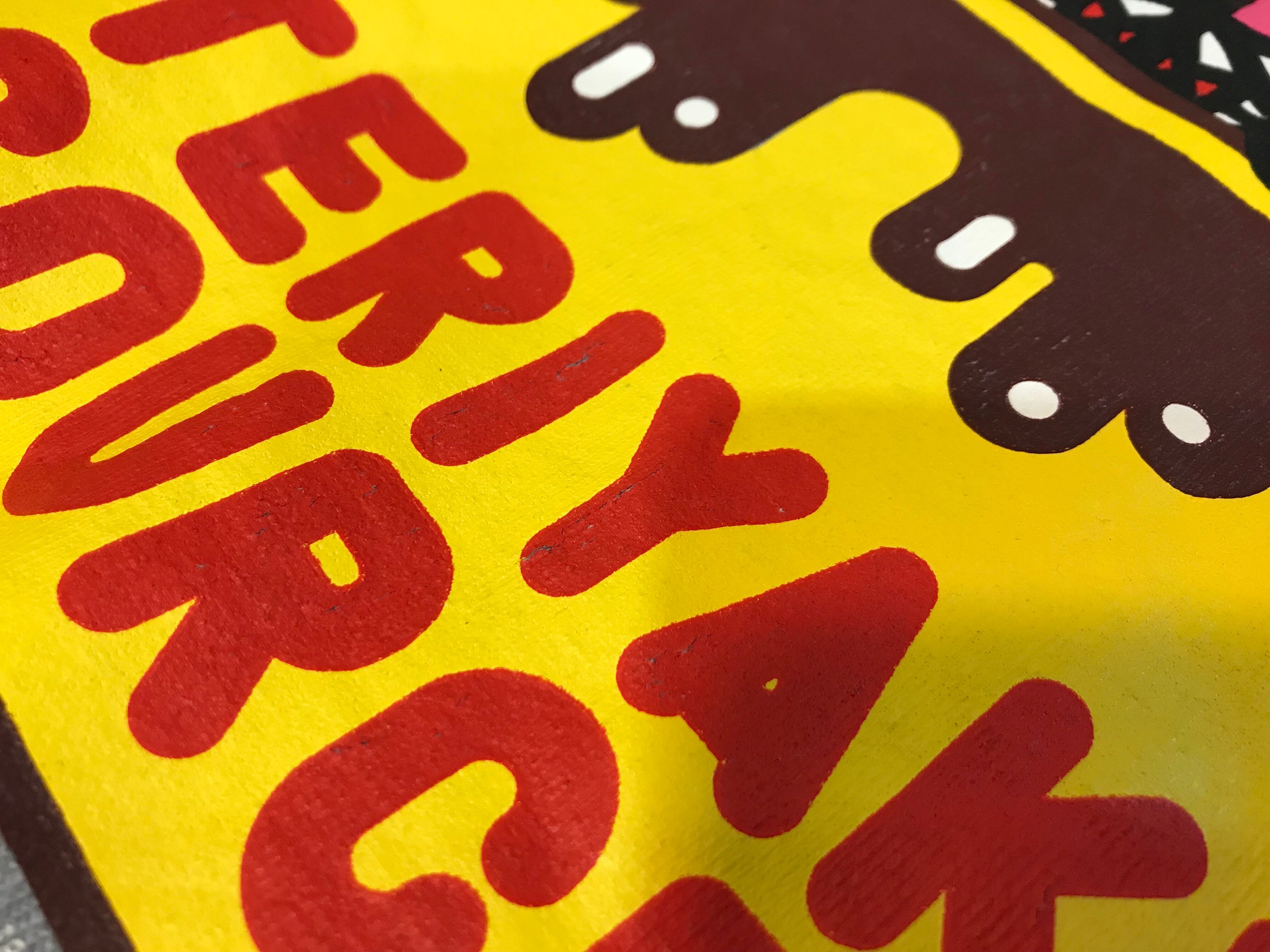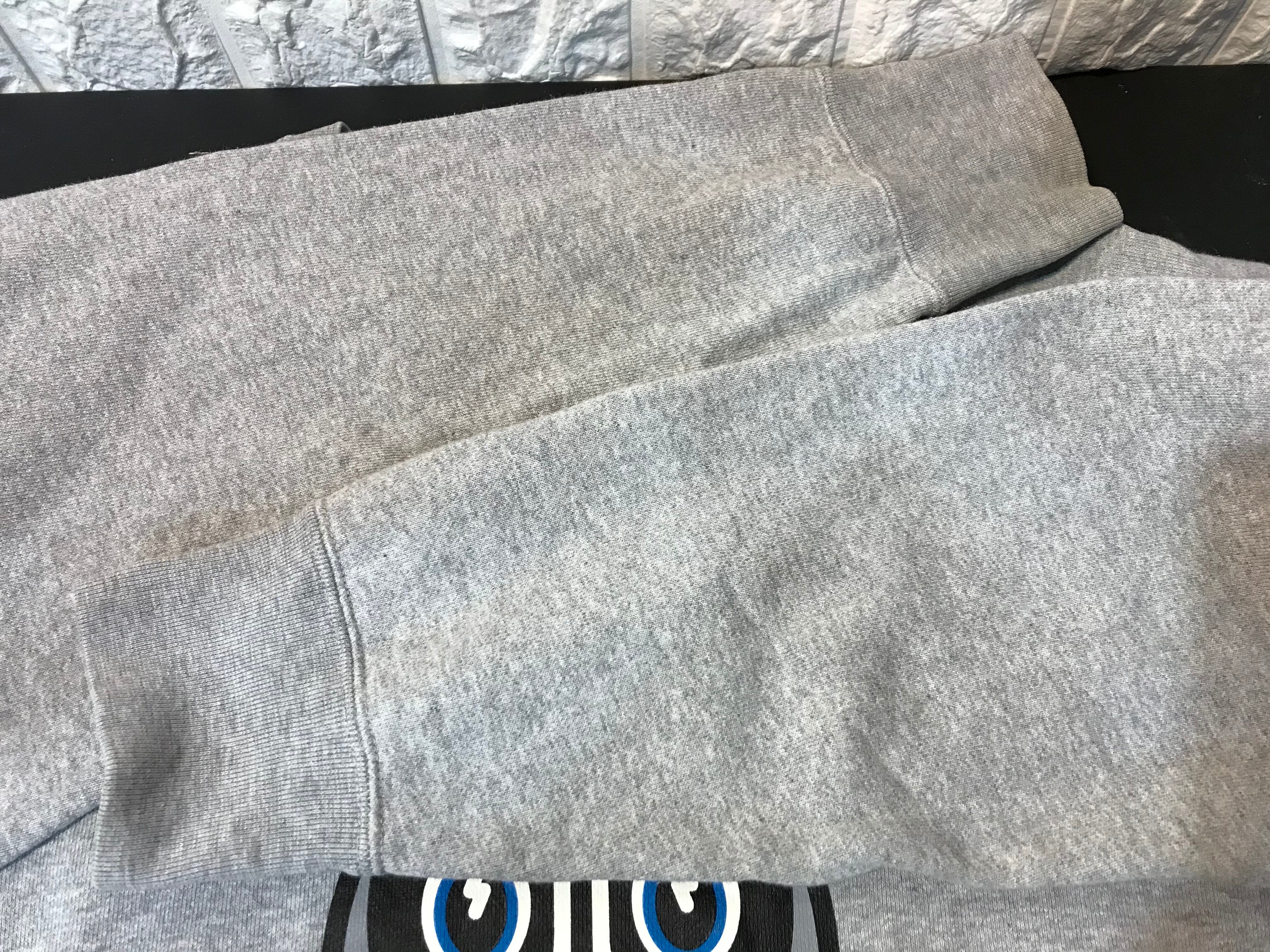若干の使用感のある生地のスレや毛羽立ち、袖口の小さな汚れやプリント部分のひび割れなどあります。