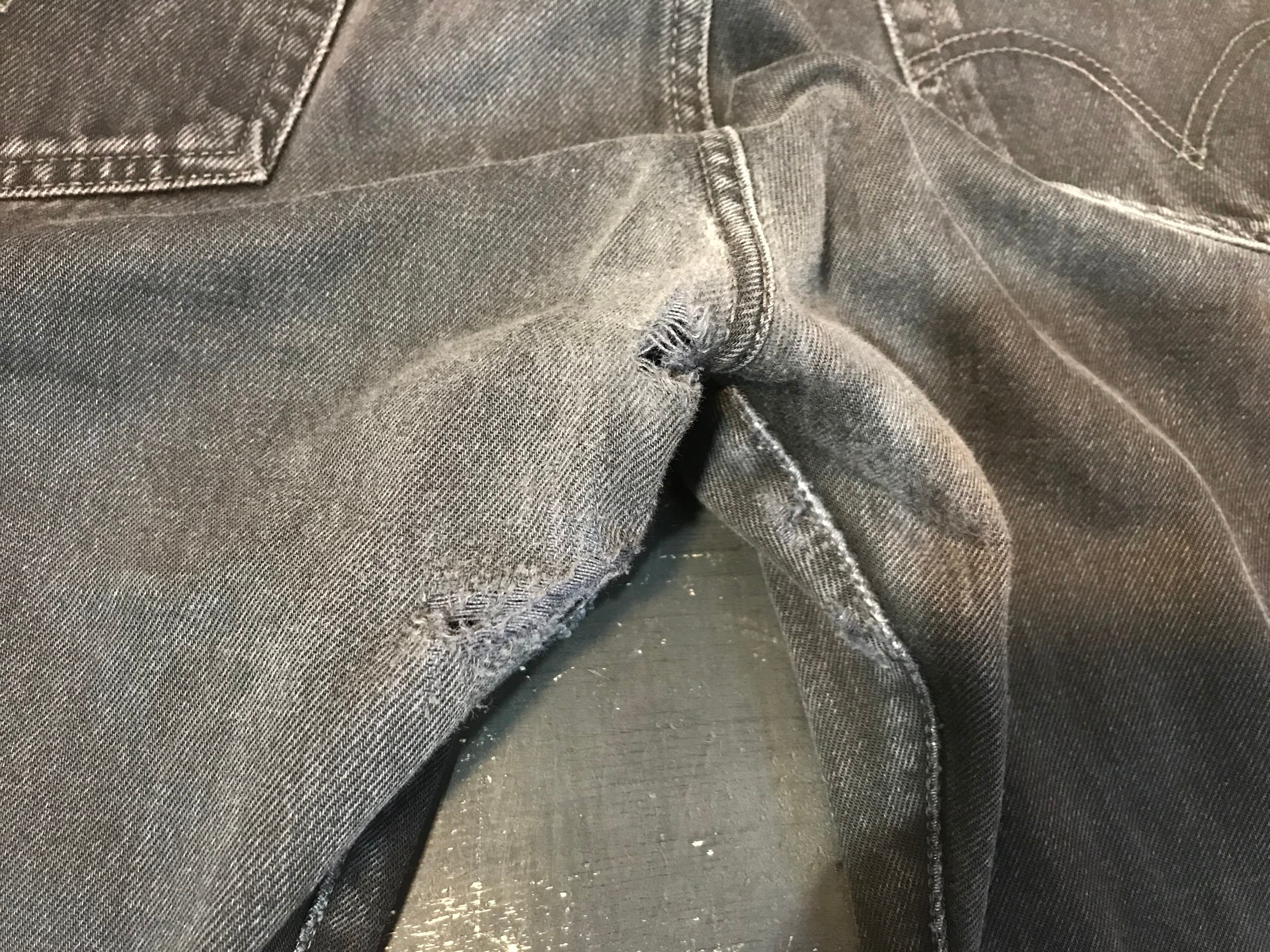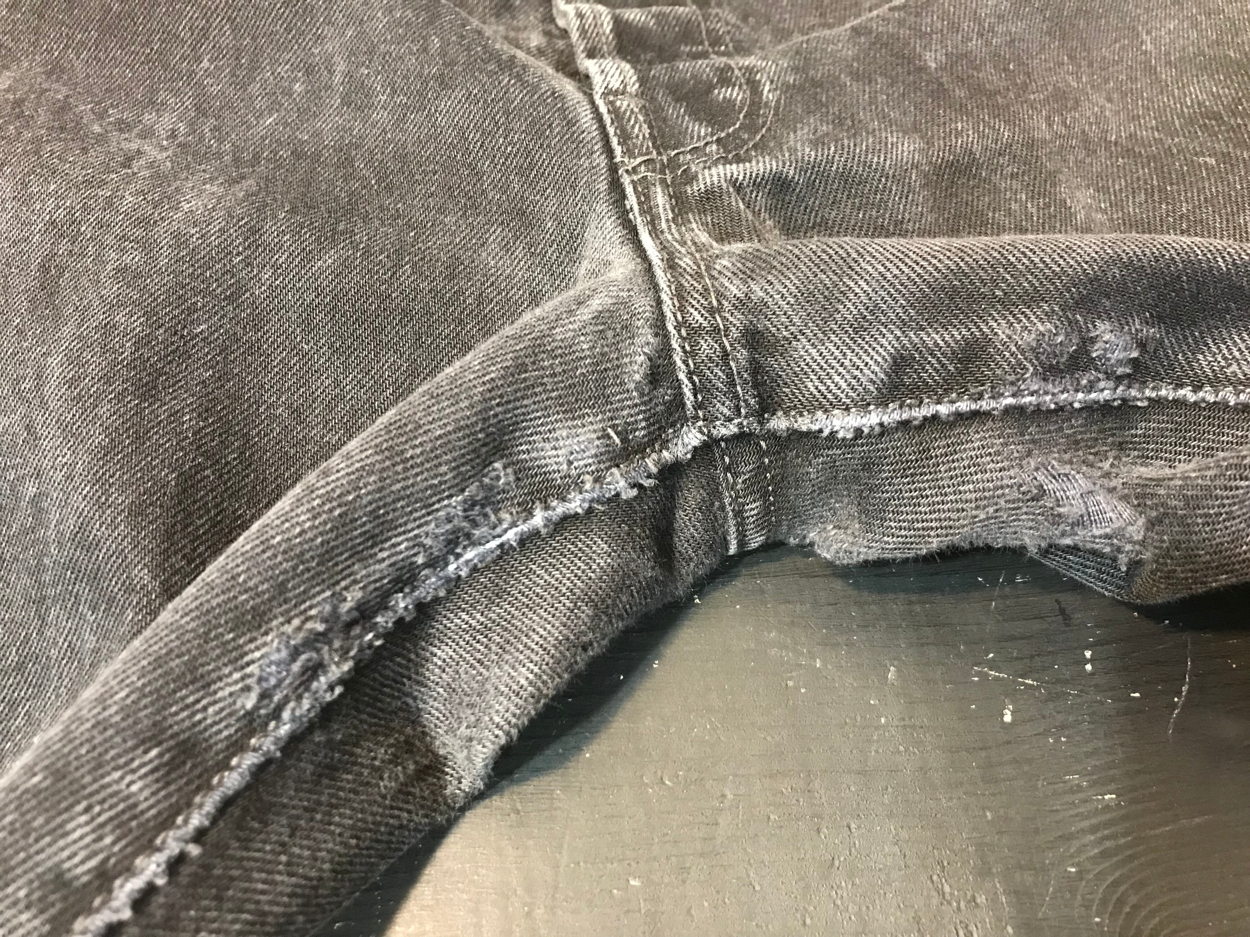 股下部分、裾部分に生地のスレや毛羽立ち、破れなどあります。