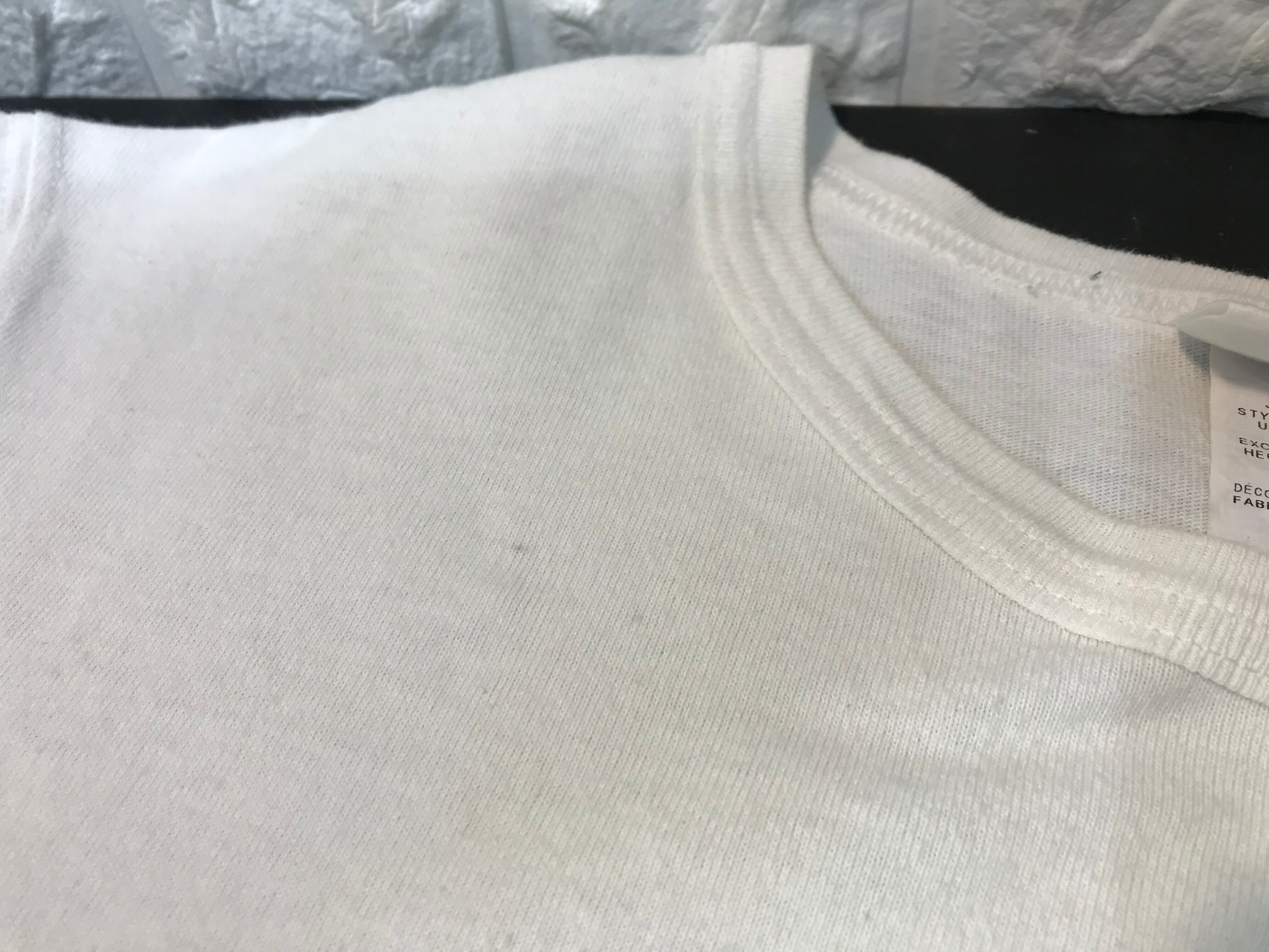 襟周りやロゴ周りに若干の使用感のある生地のスレや毛羽立ちがあります。