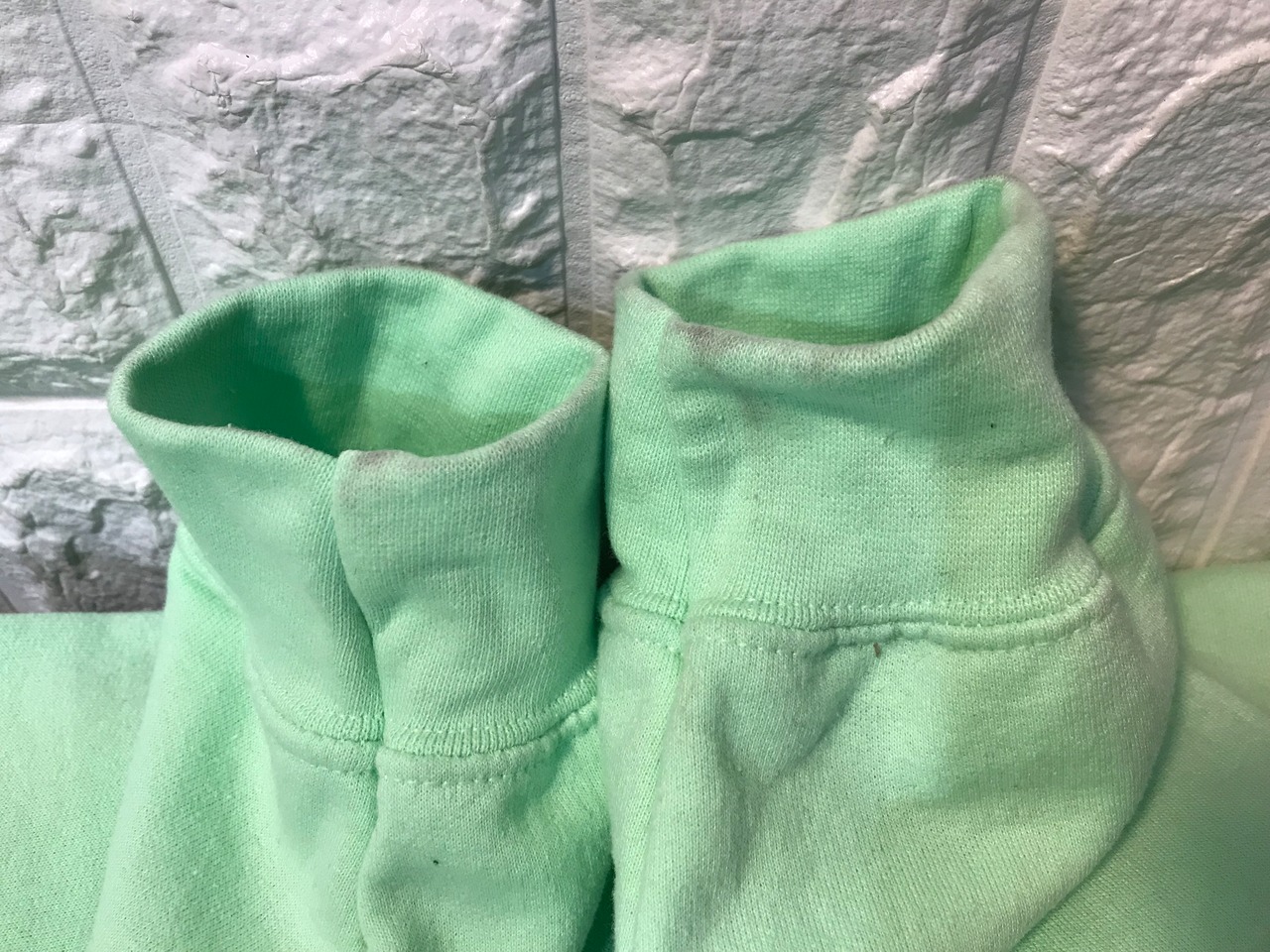 両袖口と裾部分に使用感のある生地のスレや汚れがあります。