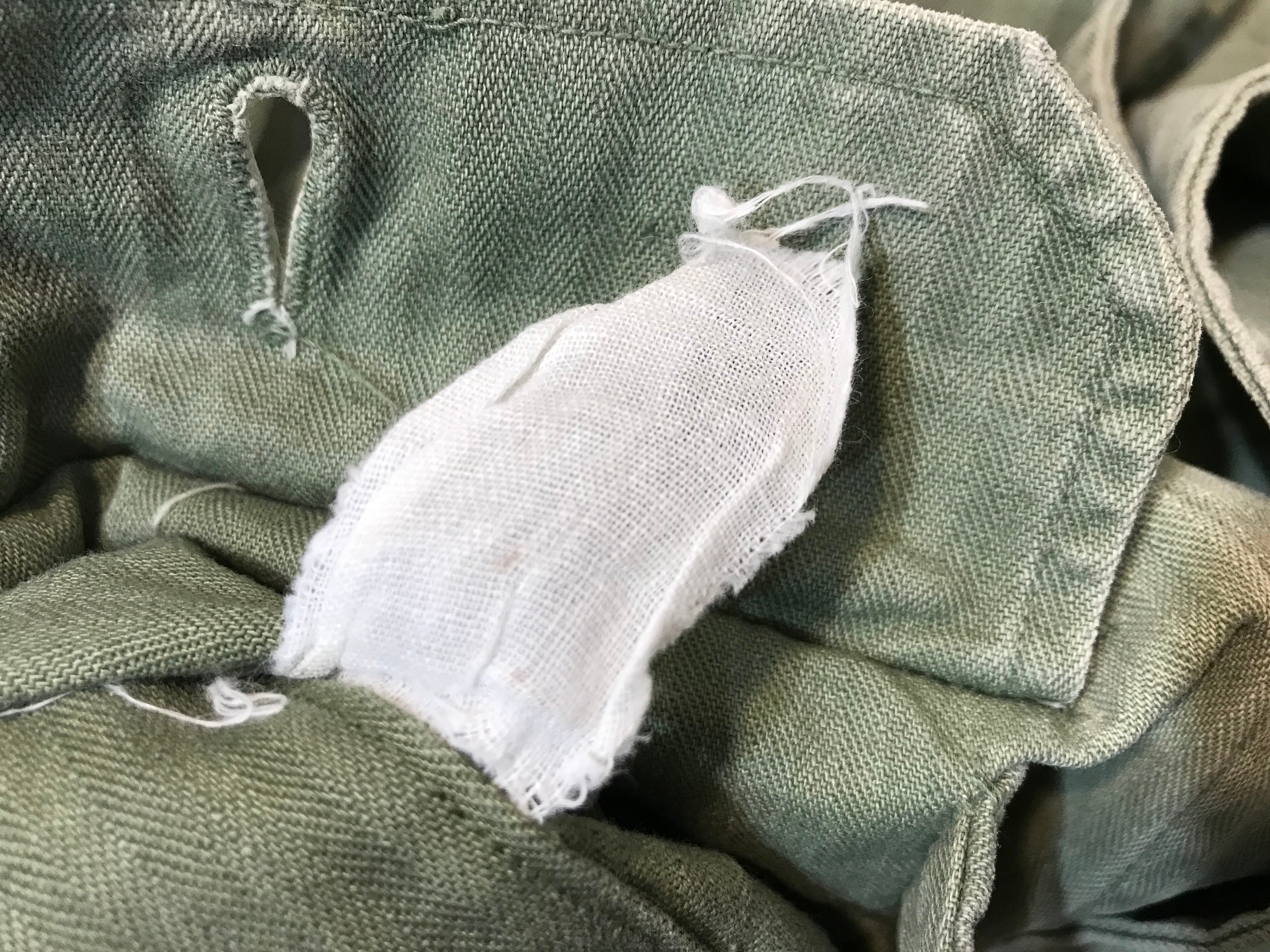 全体的に使用感のある生地のスレや補整跡、色褪せや汚れがあります。