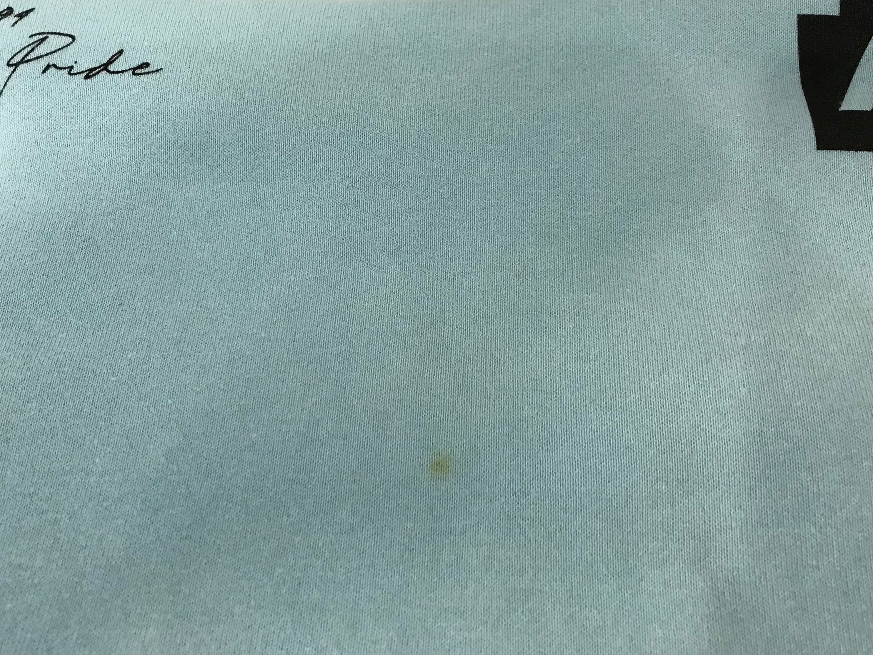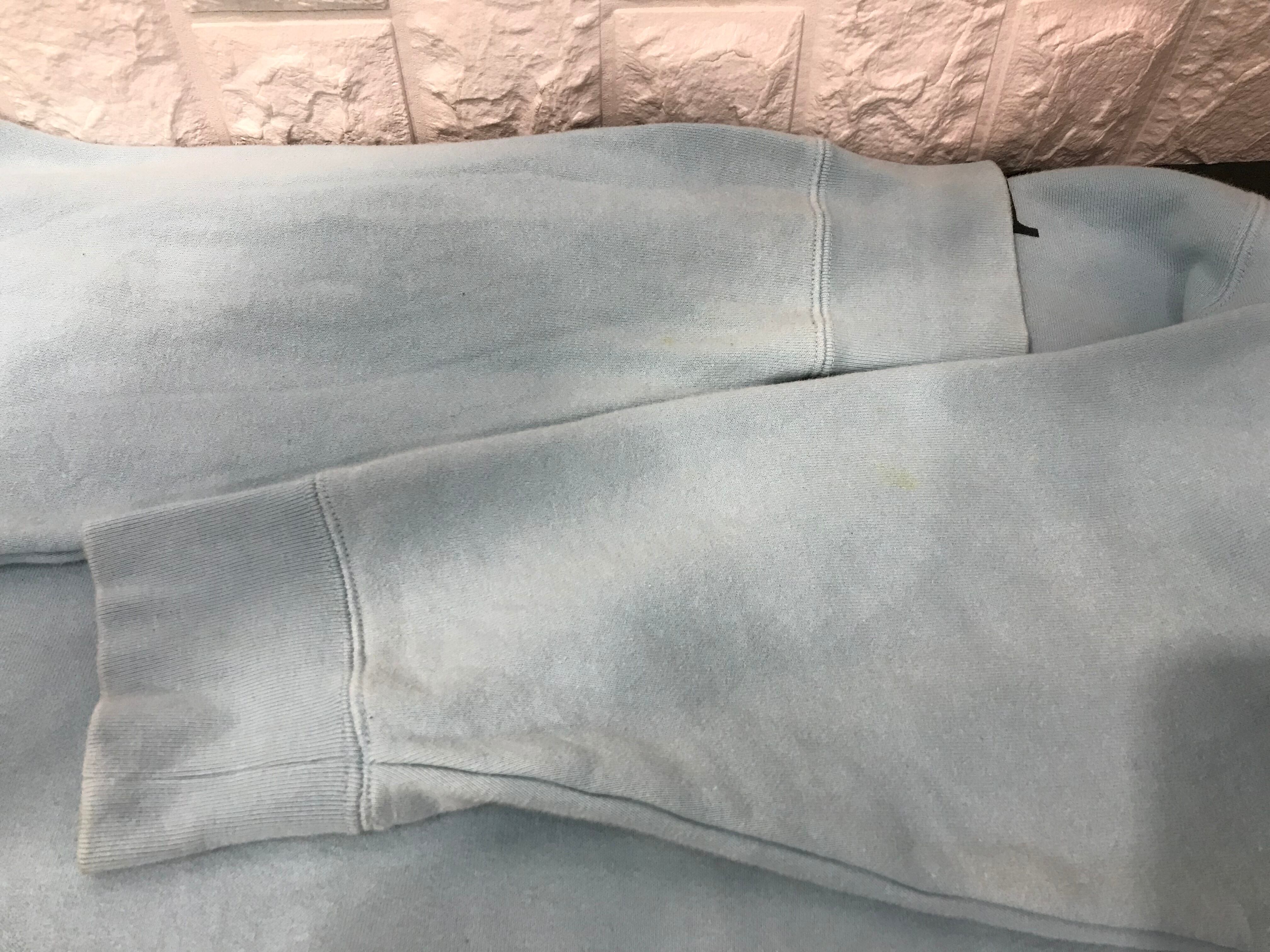 襟周りや袖口部分に使用感のある生地のスレや黄ばみや汚れがあります。