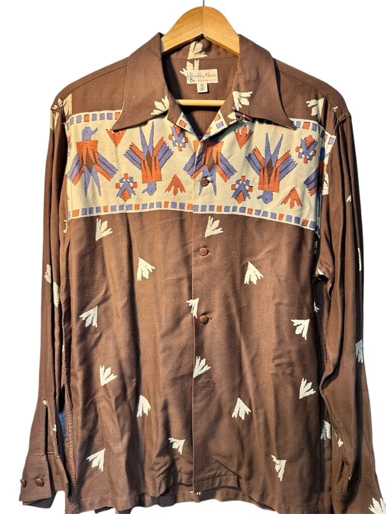Dry Bones サンダーバード柄 レーヨンギャバシャツ サイズ M 38 ブラウン
