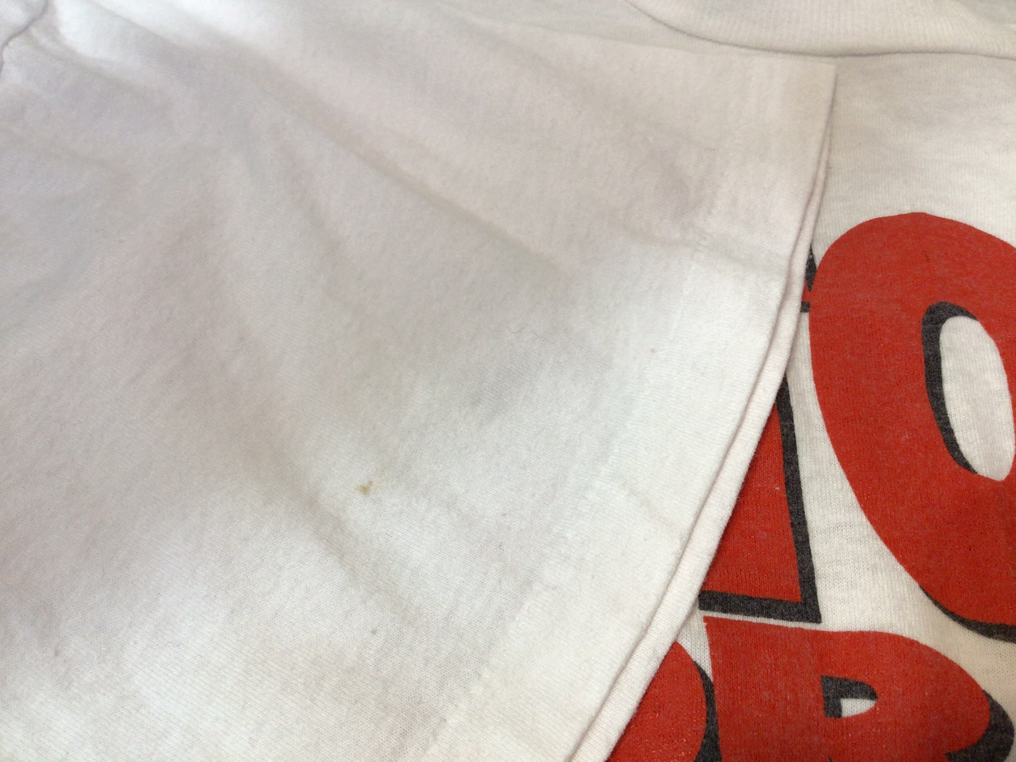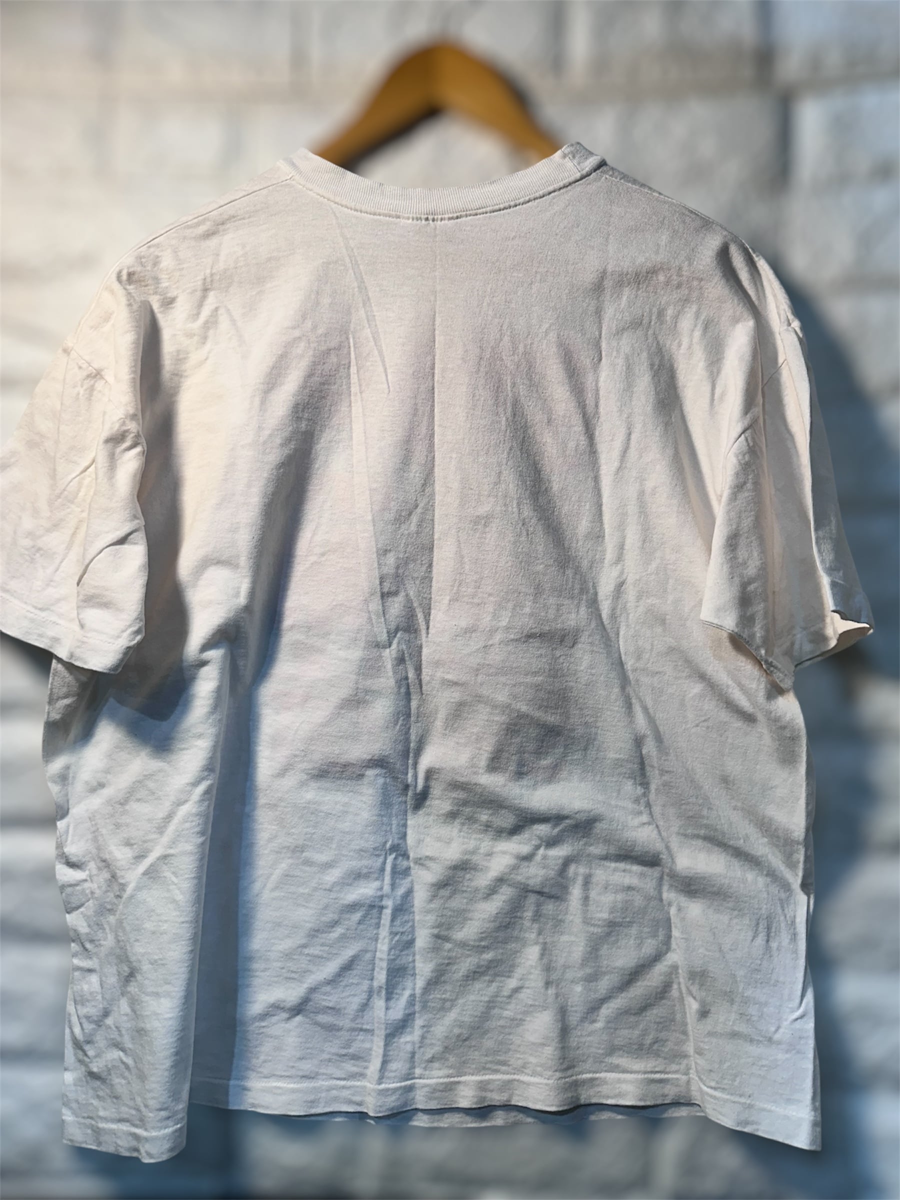 経年品につき使用感はあり、よく見ると左胸あたりと右袖部分に薄い色ジミはありますが、その他、大きなダメージはないかと思います。